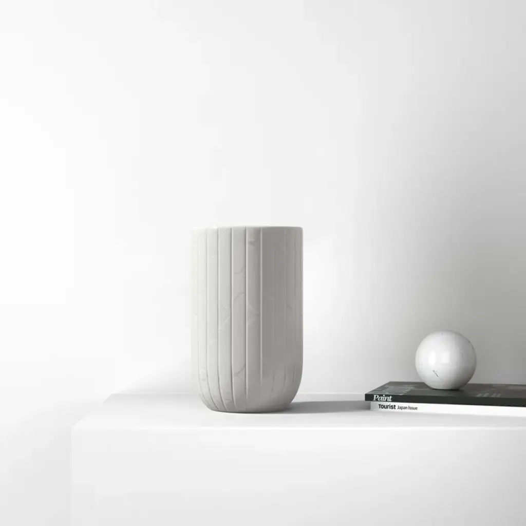 The white continuous relief pattern of the vase makes it a subtle way to add a clean style to your home.