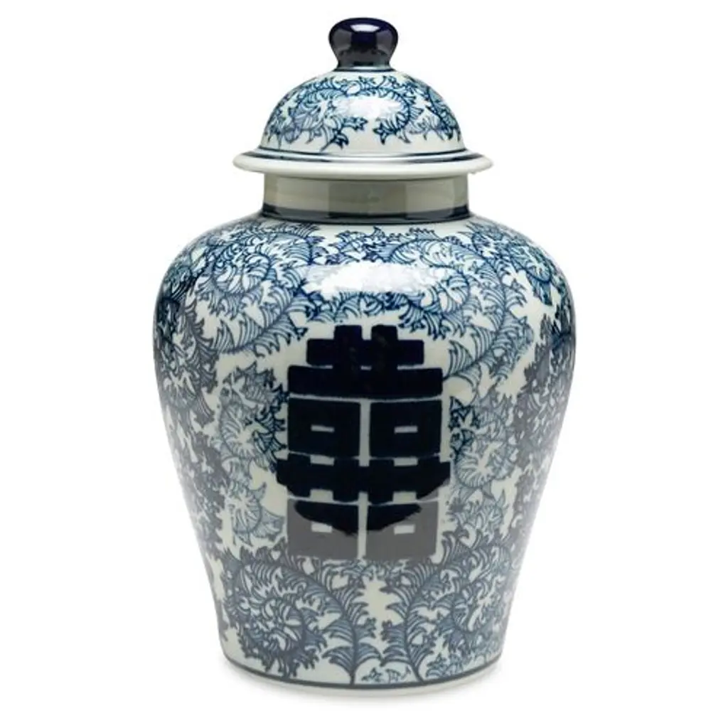 With a classic blue pattern and light-green glaze, this porcelain jar will bring a stylish sophistication to your space. Mix and match for a bolder look.