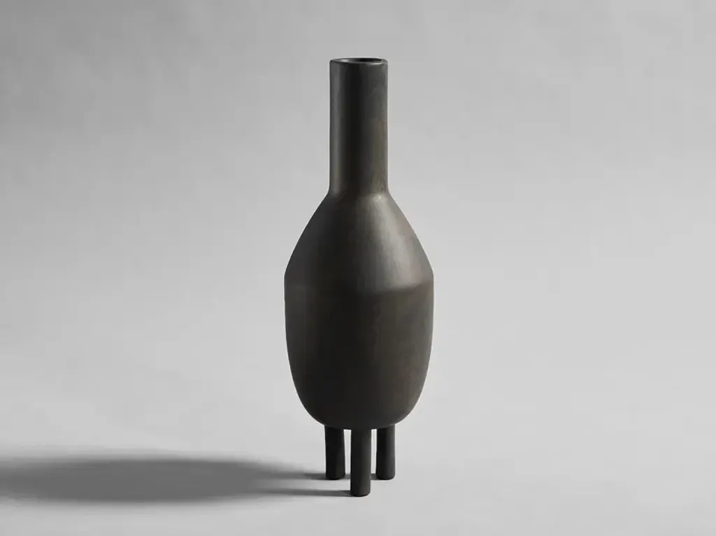 Reminiscent of little, individual three-legged characters or friendly creatures, the DUCK series is a playful and exuberant addition to a more minimalist series of trays, vases, bowls, pots, jars and plates in a modern interior. Yet, true to the design manifest of 101 Copenhagen, the collection is held in natural colours to fit into the Scandinavian home. As it is a hand glazed natural product, the colours may vary slightly and while it is not 100% waterproof, a bag for fresh flowers is included.