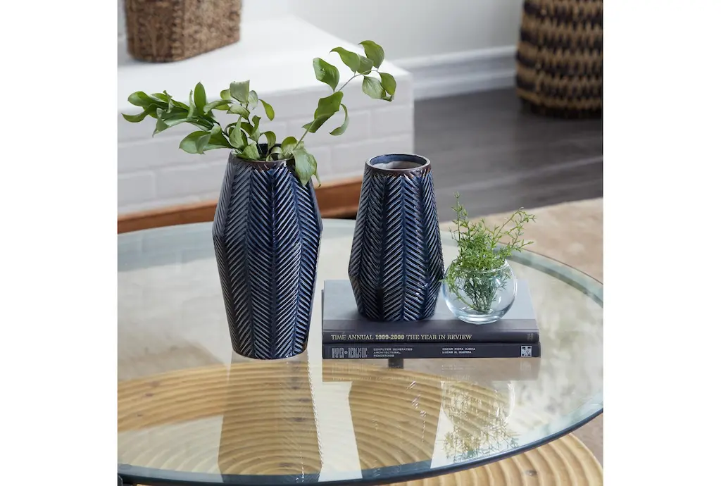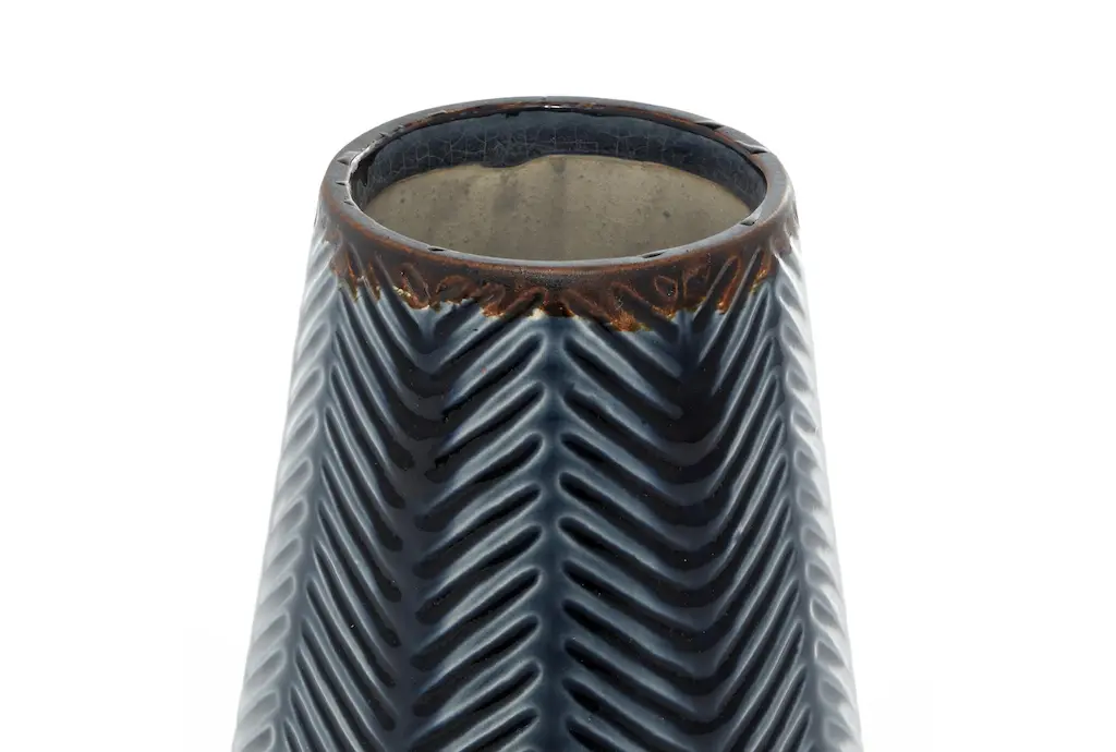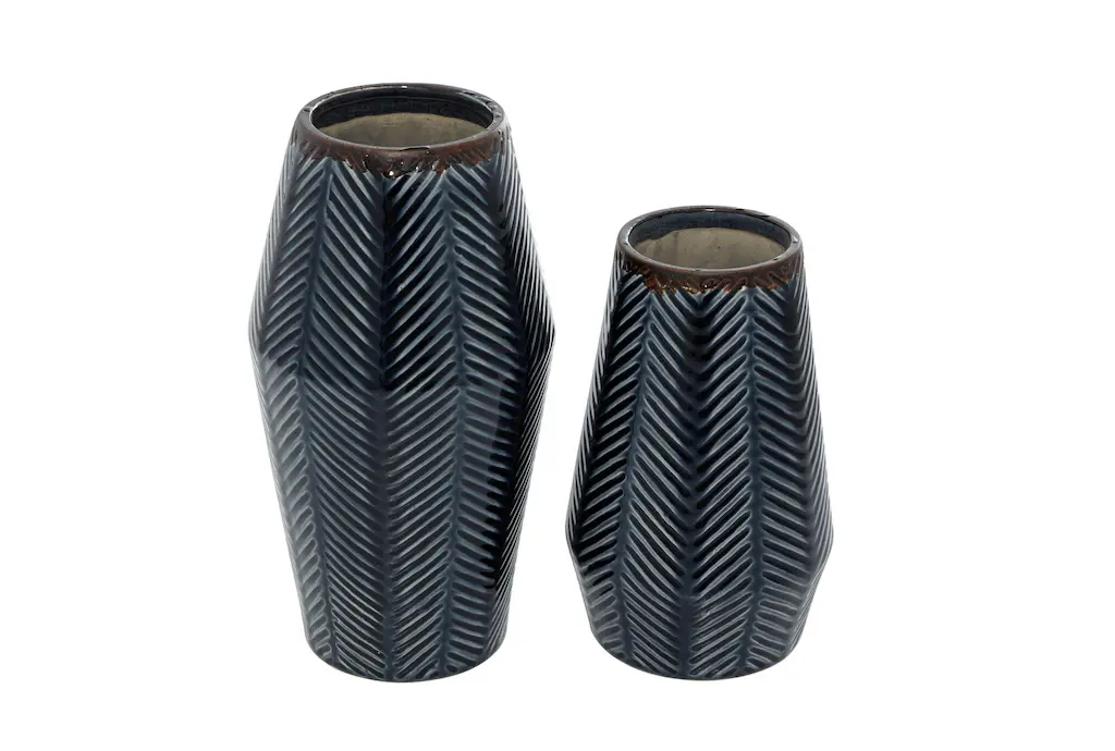 11" 8" Navy Ceramic Herringbone Pattern Vases | Set Of 2