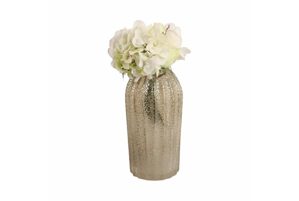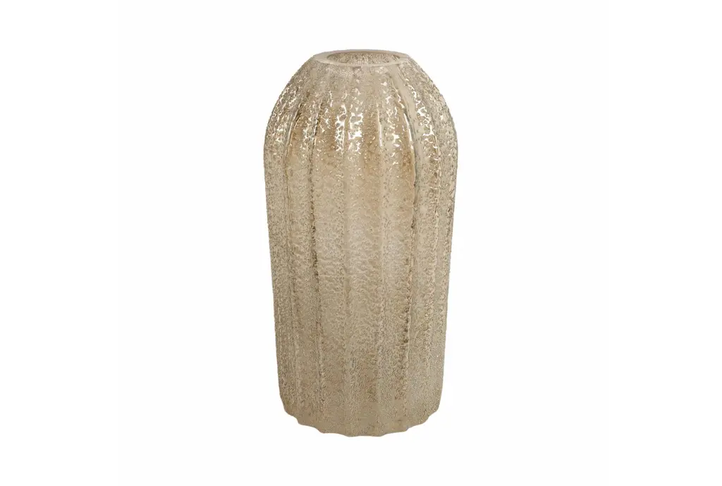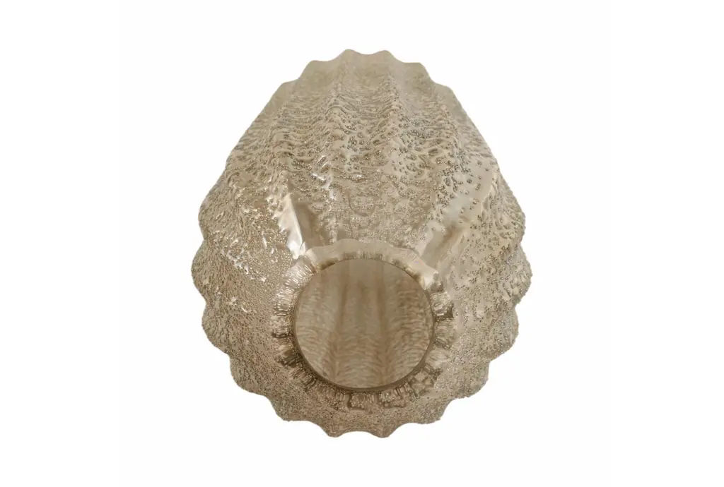 The 12" Iridescent Cream Caviar Artisan Blown Glass Vase is a stunning addition to any modern decor. Its elegant gold hue and unique texture make it a standout piece. Crafted from high-quality glass, this vase is both durable and beautiful.