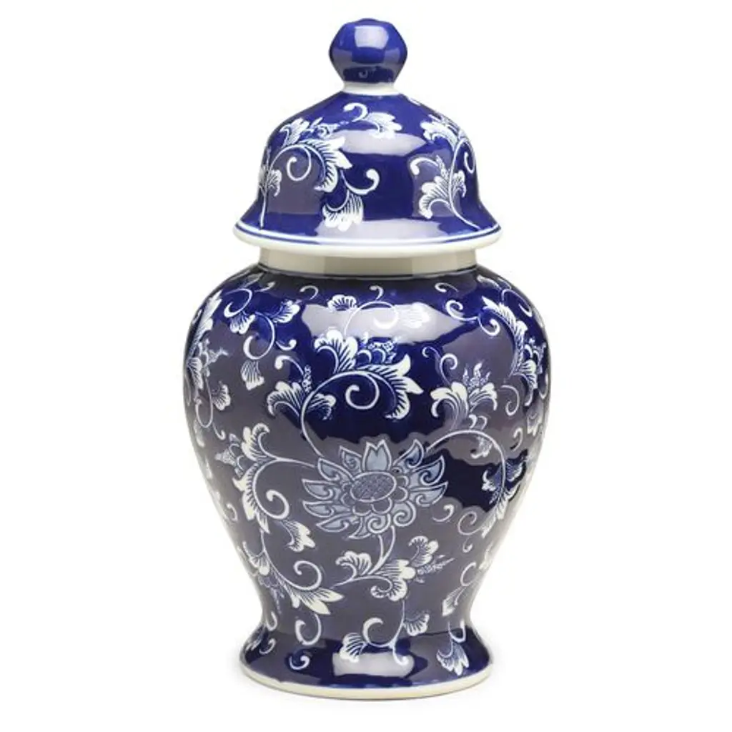 15" Lisse Tall Classic Ginger Jar, Blue/white