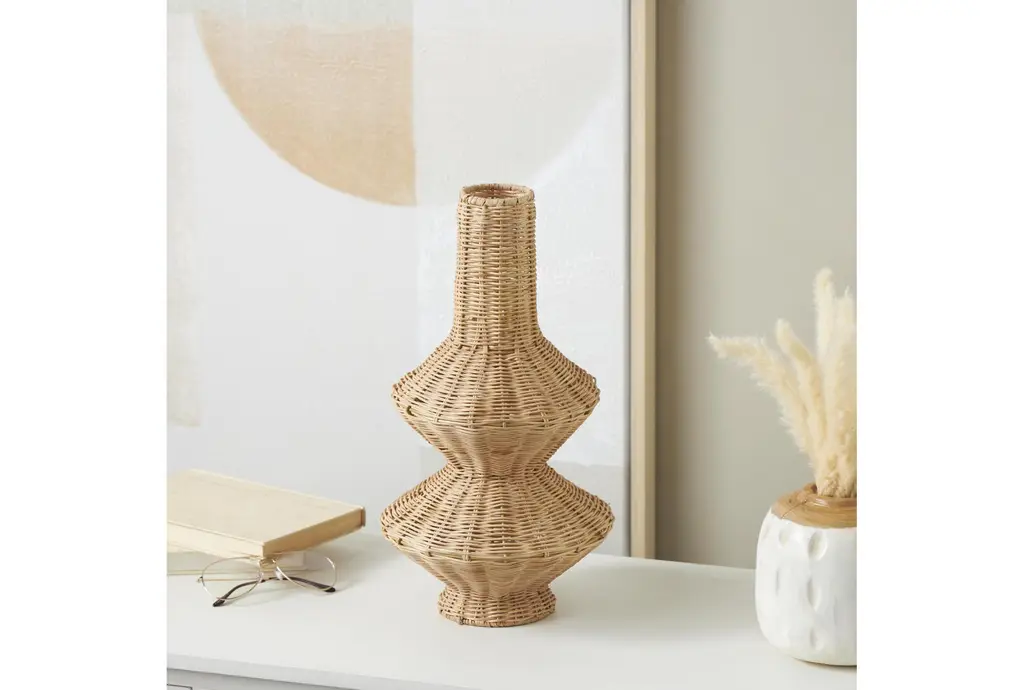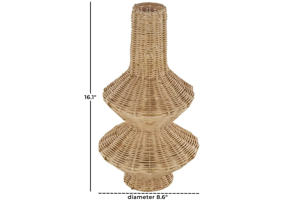 16" Brown Rattan Handmade Woven Hourglass Vase