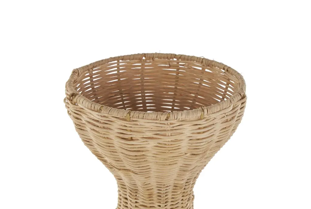 16" Brown Rattan Handmade Woven Hourglass With Dome Base Vase