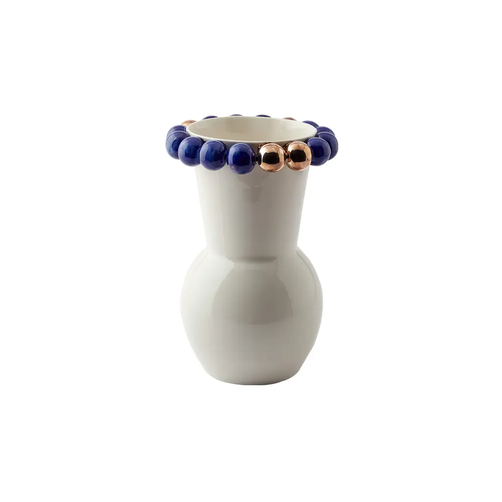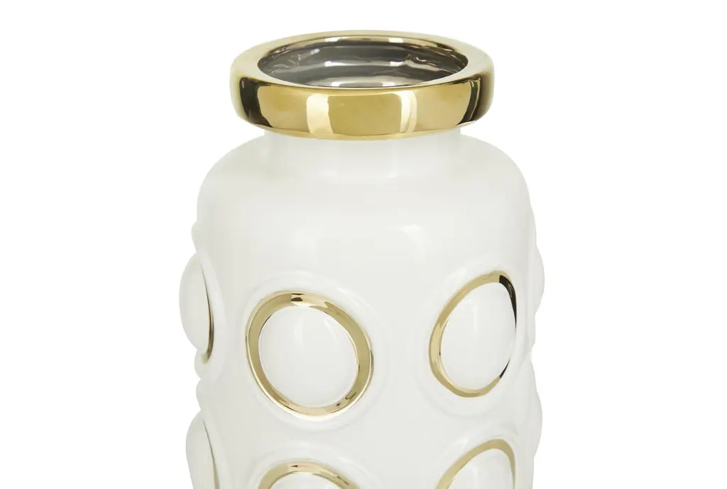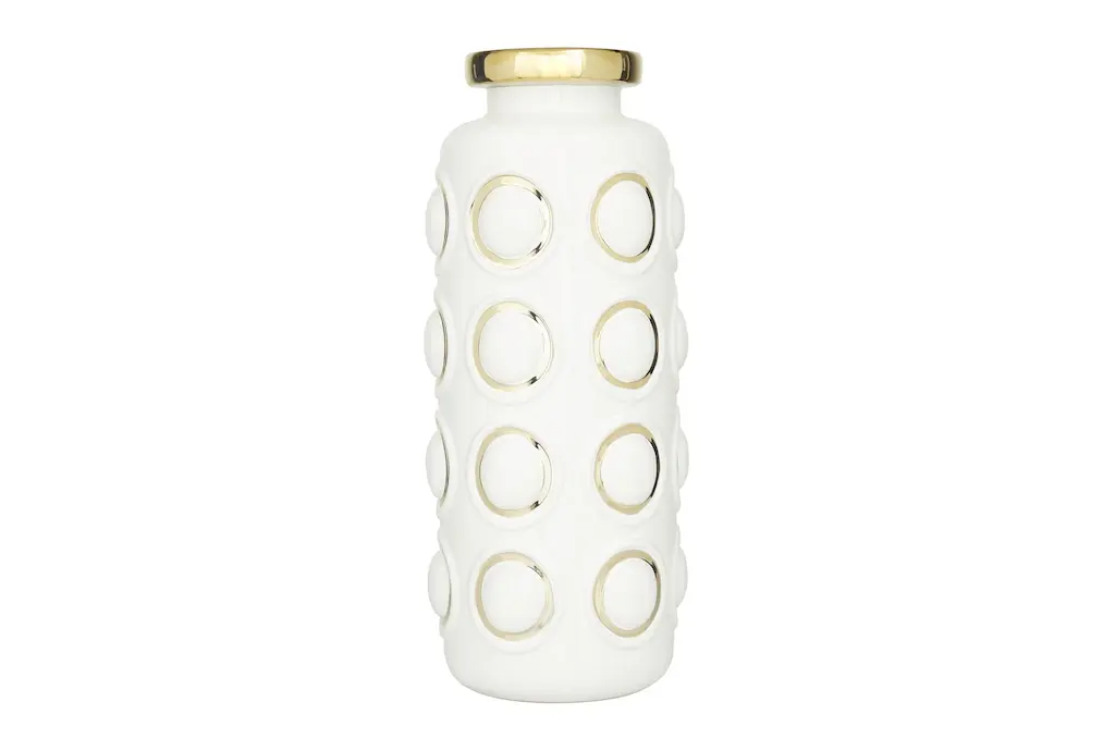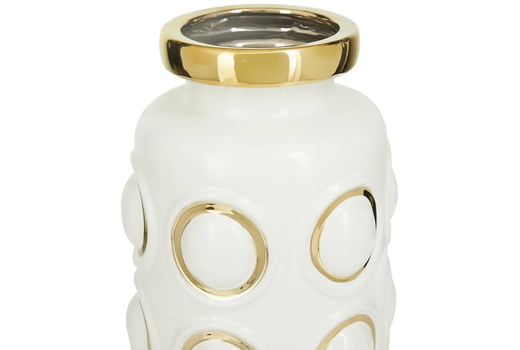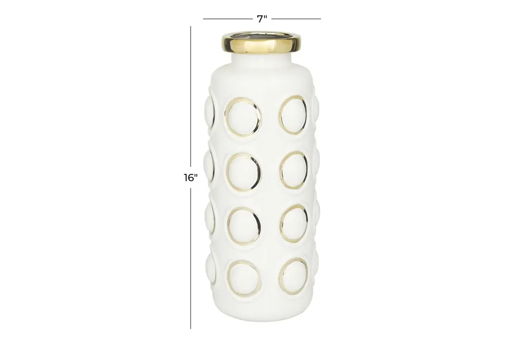 16 Inch White + Gold Stoneware Circle Pattern Vase