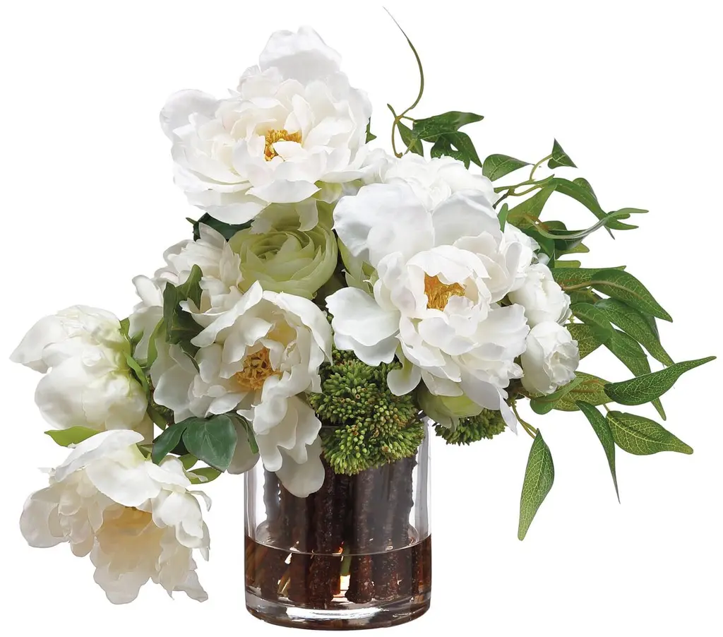16" Peony & Ranunculus Arrangement W/ Vase, Faux