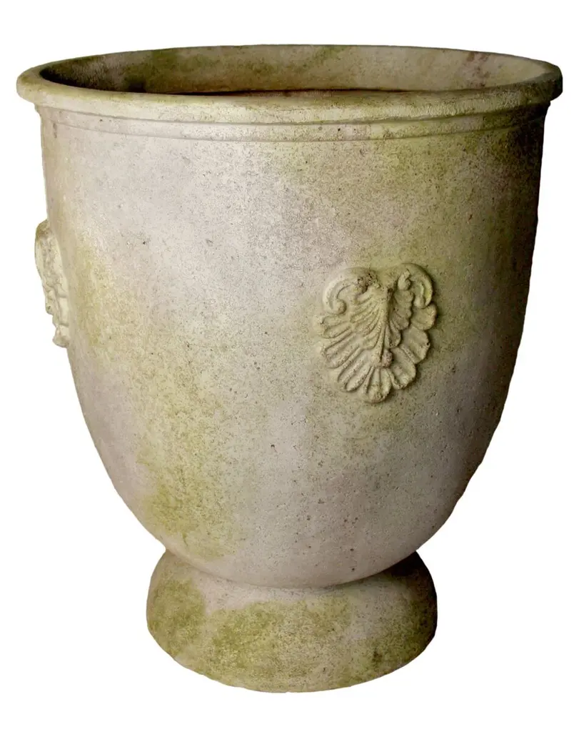 With its classic details and weathered finish, this fluted urn is an elegant addition to any outdoor space.