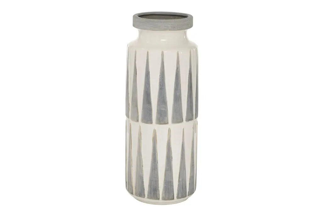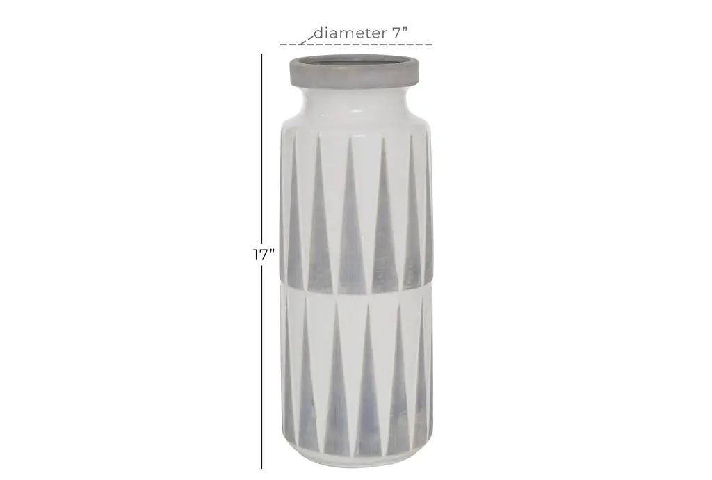 17 Inch Grey And White Tall Geometric Ceramic Vase | Round