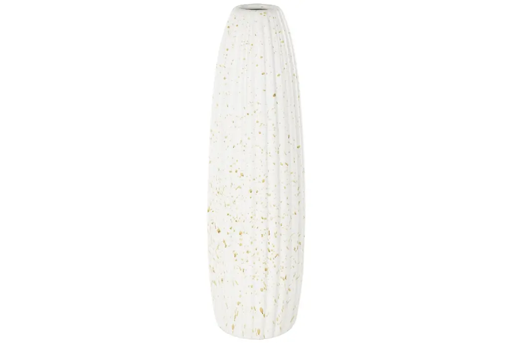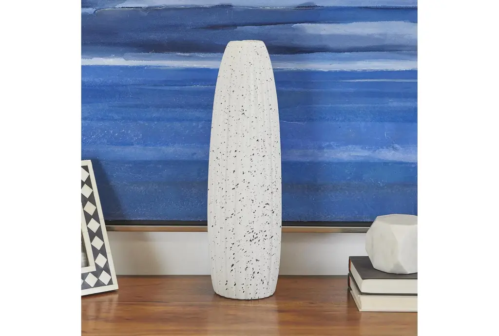 18" Ceramic Tan Speckled Cynlinder Vase White