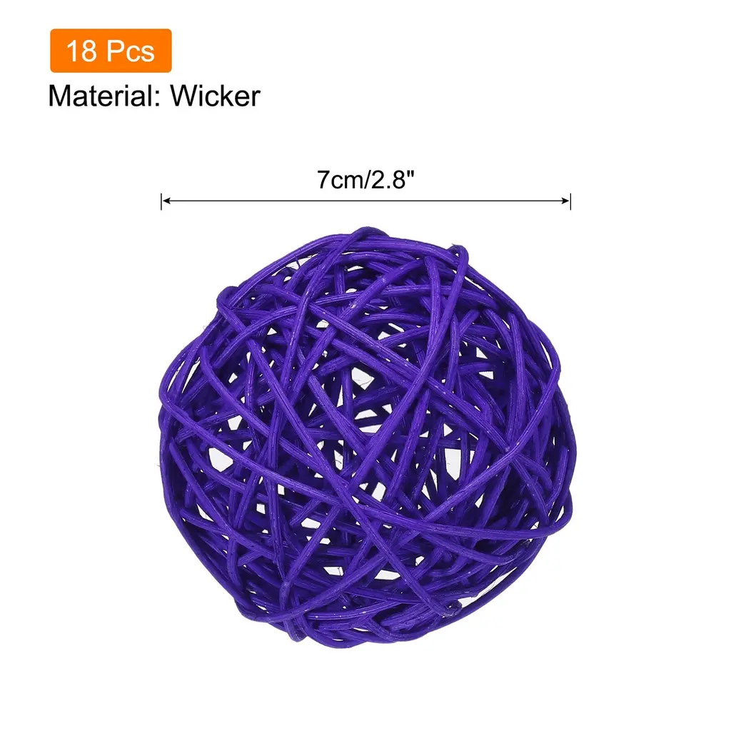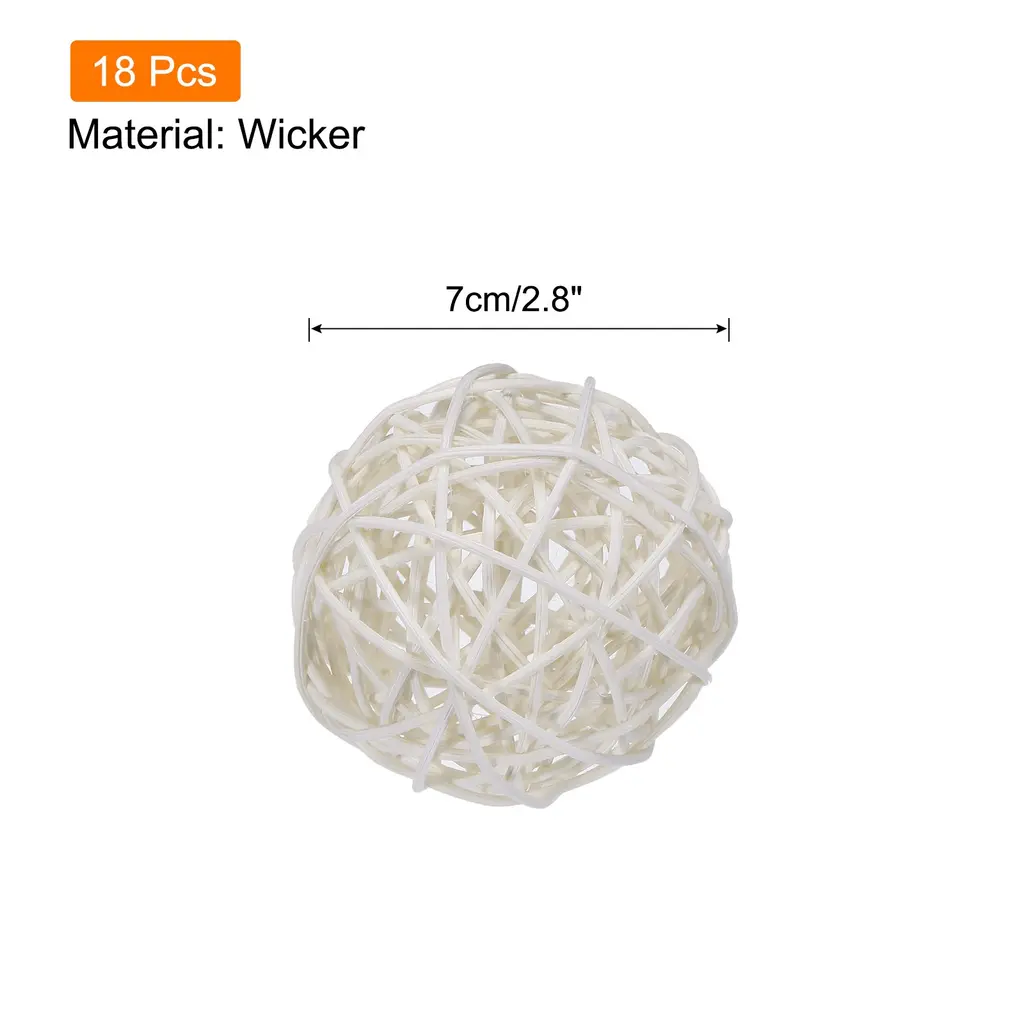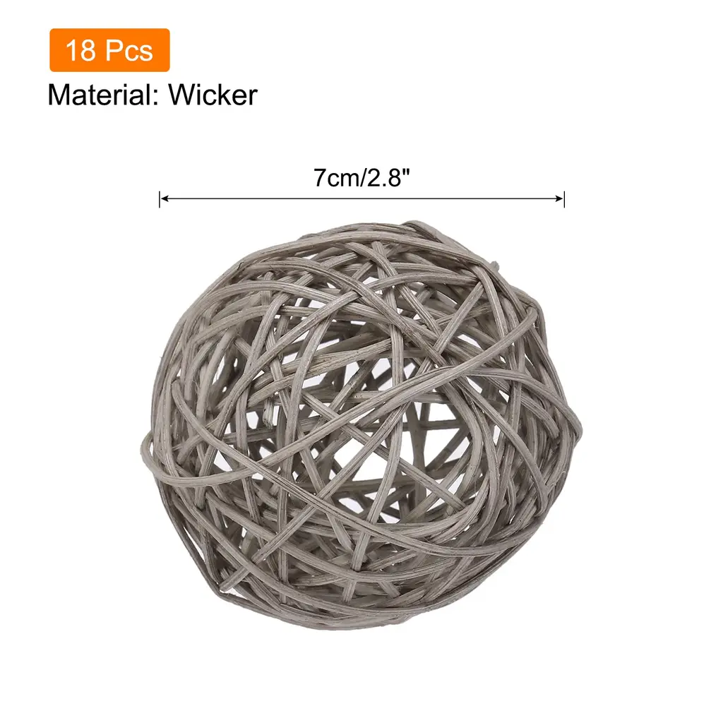Add a touch of natural elegance to your home decor with these 18 Pcs Wicker Rattan Balls. Handmade by skilled craftsmen, these decorative balls are evenly dyed, simple, and durable. Made from high-quality wicker, they are lightweight, reusable, and suitable for various occasions. With a diameter of 2.8 inches, they are perfect for DIY craft projects, vase fillers, flower arrangements, or as hanging decorations for parties and events. Let your creativity shine by incorporating these wicker rattan balls into your home decor. Please note that due to their handmade nature, there may be slight variations in size, color, and shape.Features: