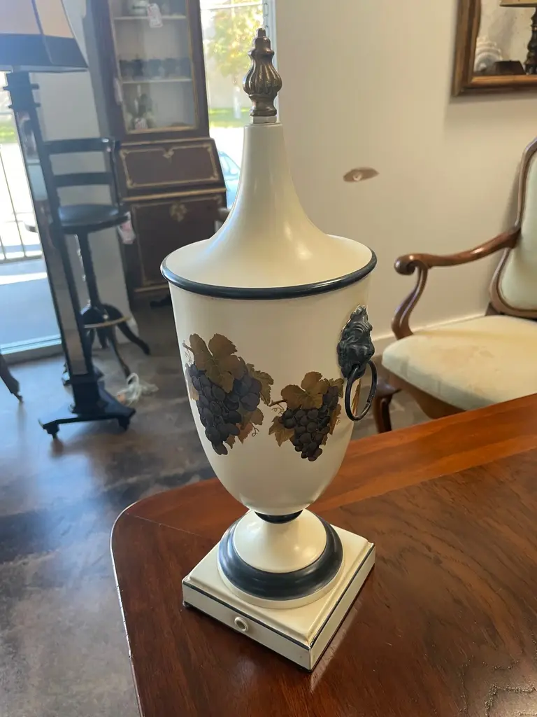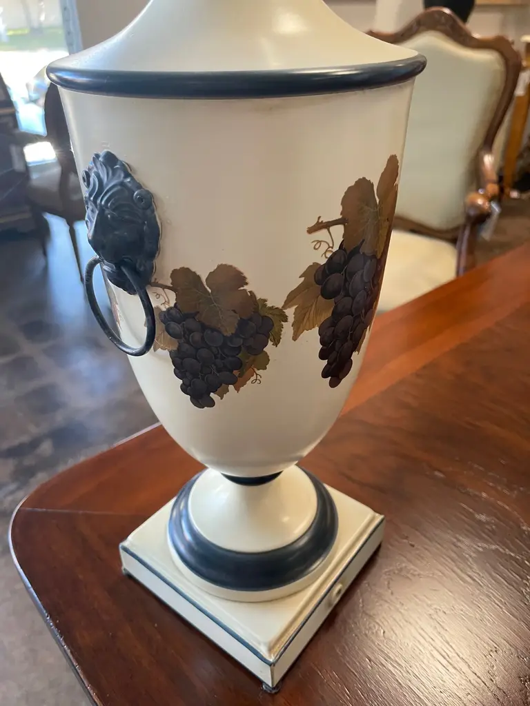 Hand-Painted Ceramic Urn With Lid Featuring Grapes. Created in Italy. This urn could become table lamp also .