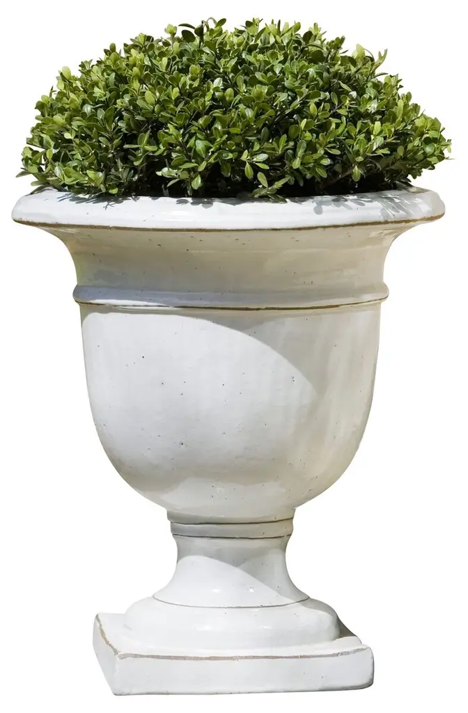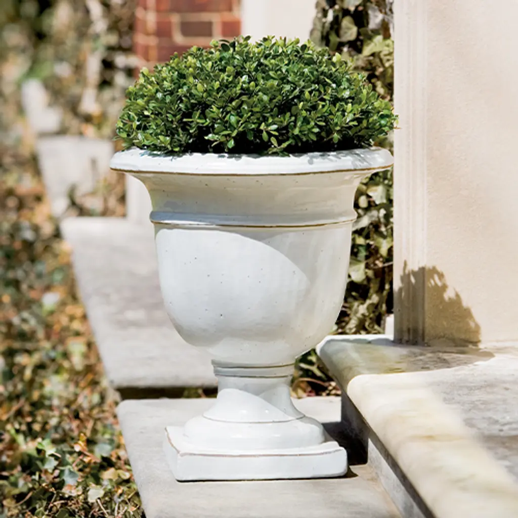 Add a stately appeal to your entryway or patio with this classic white urn crafted of glazed ceramic.