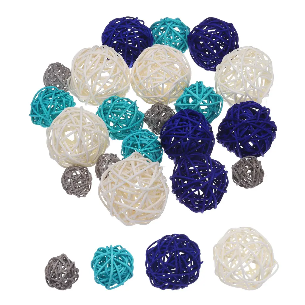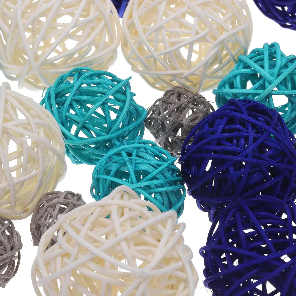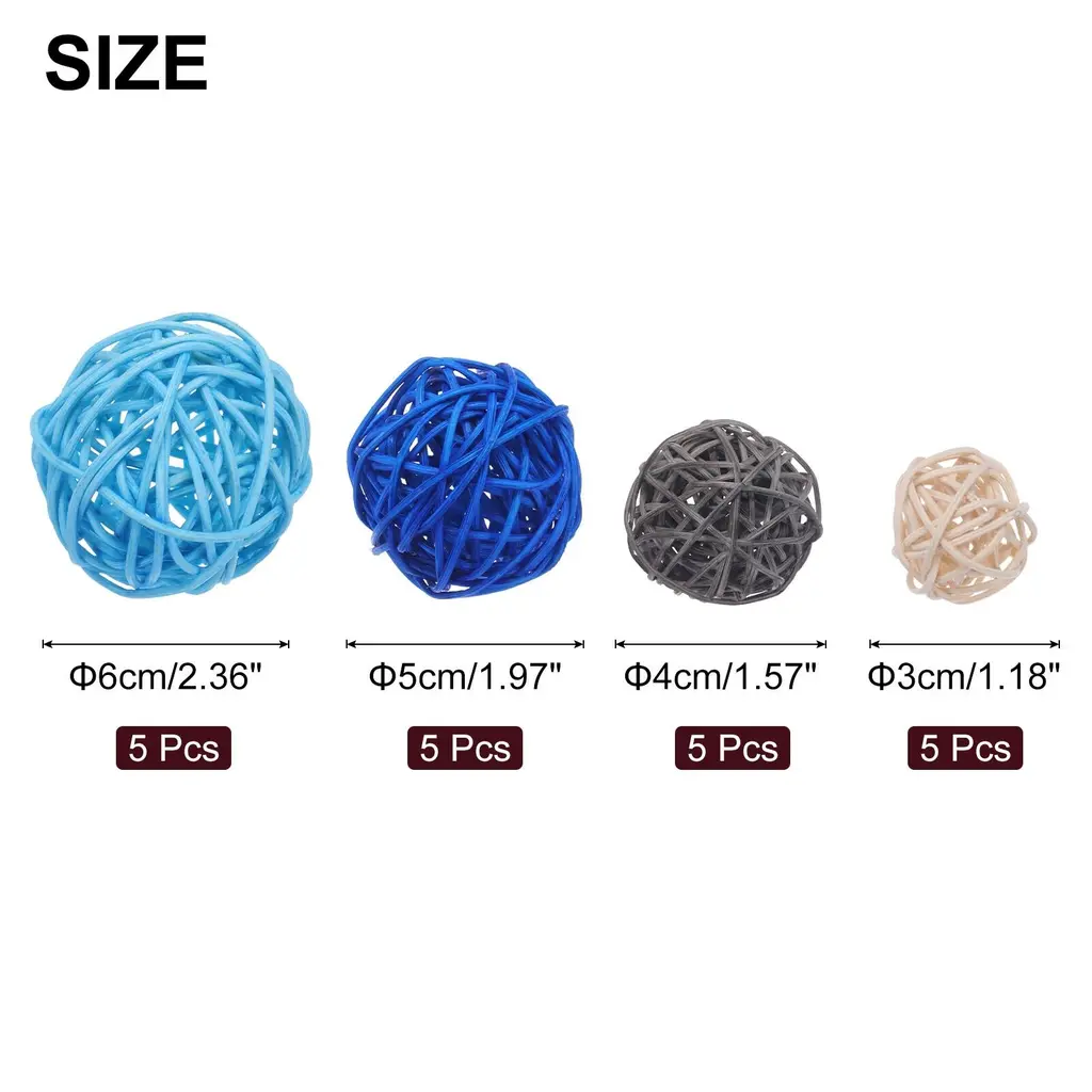 20 Pcs Vase Filler Decorative Balls, 2.4/2/1.6/1.2" Wicker Rattan Decor, Balls Bowl Fillers - Light Blue/blue/gray/beige
