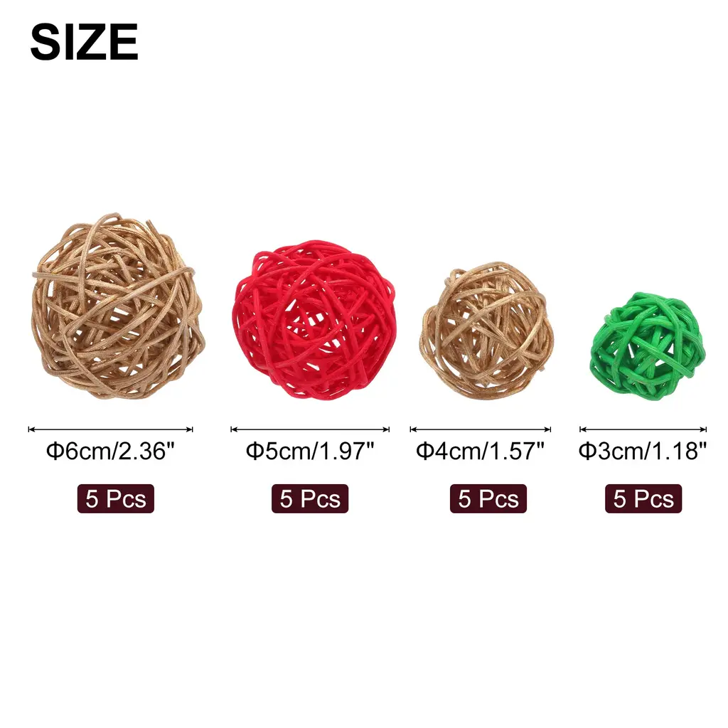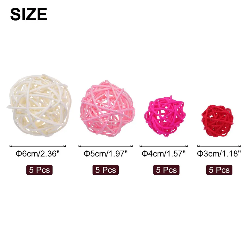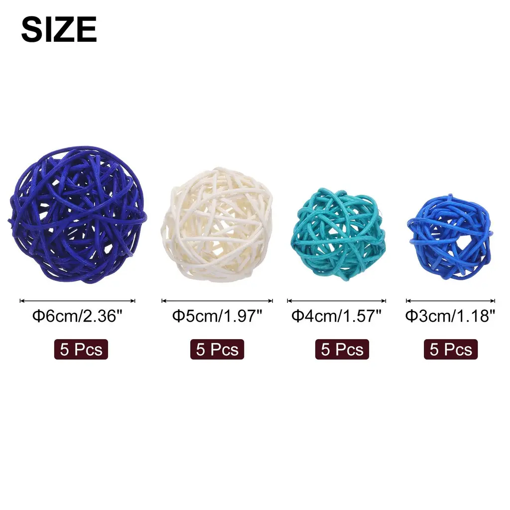 What is this?These vase fillers for home decor are handcrafted, and made of woven rattan wood, lightweight, durable, and colorfast, ensuring long-lasting beauty. Suitable for DIY crafts, perfect as table centerpieces, vase bowl fillers, craft supplies, wedding, party, and house decorations, flower arrangements, aromatherapy accessories, etc.What will I get?In the package of 20pcs orbs rattan decor, 6cm white x 9pcs, 5cm lake blue x 9pcs, 4cm sky blue x 9pcs, 3cm gray x 9pcsColor: White/Lake Blue/Sky Blue/Gray4 Sizes: 6cm(2.4")/5cm(2")/4cm(1.6")/3cm(1.2")Material: RattanAre there any advantages of the product?Use these wicker rattan decorative balls for DIY crafts, aromatherapy accessories, garden decoration, table centerpieces, wall decor, and more.How to use it?Wicker rattan decorative balls are very suitable for DIY craft projects. You can spray your creativity and imagination, such as hanging these wicker rattan balls on the walls, threading them with lights, or putting them in a transparent vase to create a pleasant atmosphere and add a more natural feeling to your room.What should I notice?Whether you are decorating for a wedding, birthday, festival, Christmas, beach table, or just decoration your home or office, these vase fillers are the perfect addition.