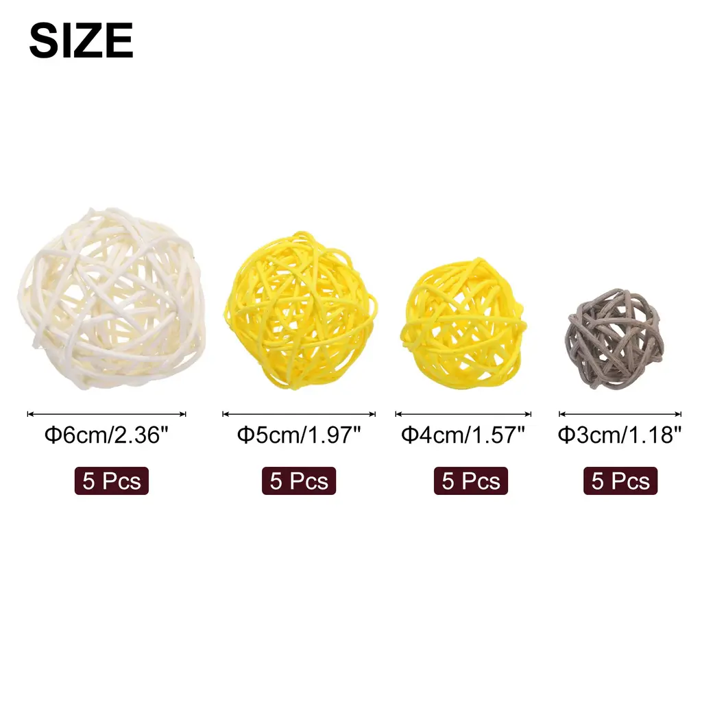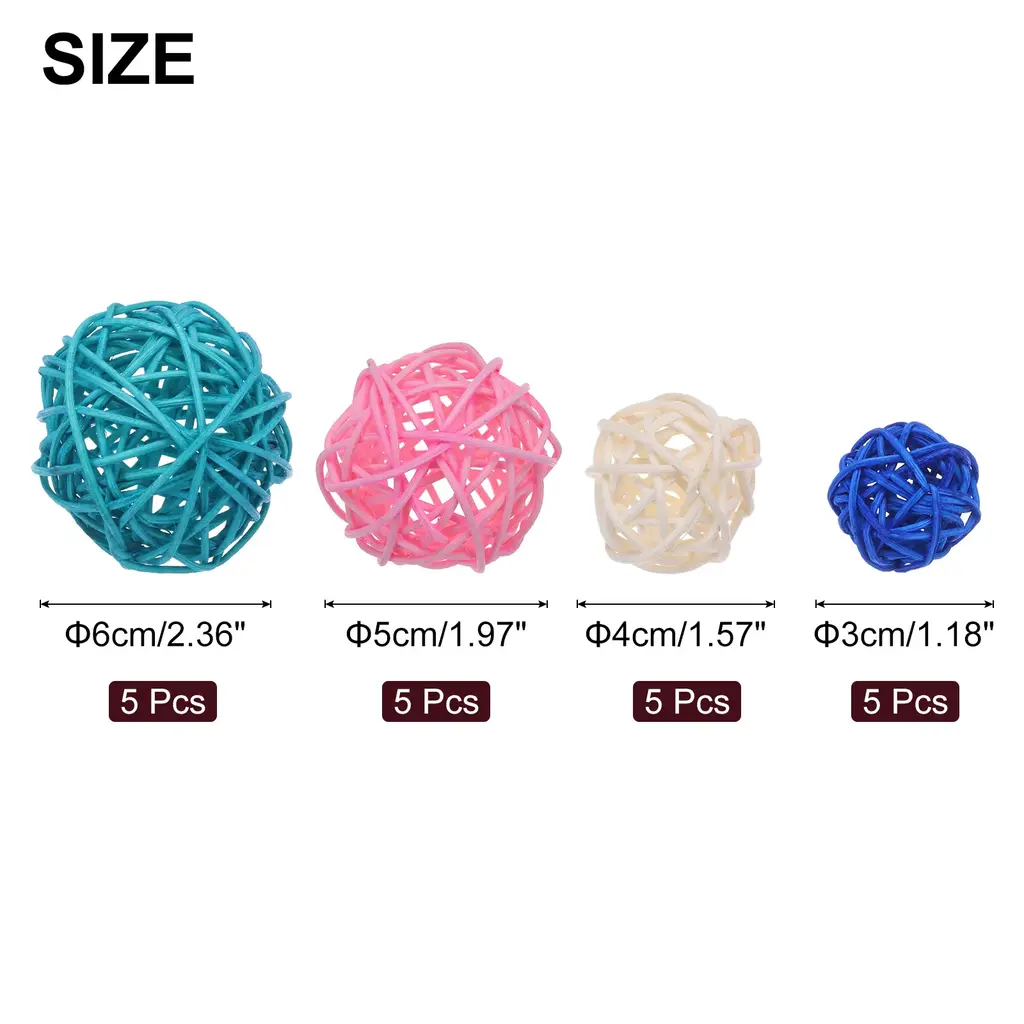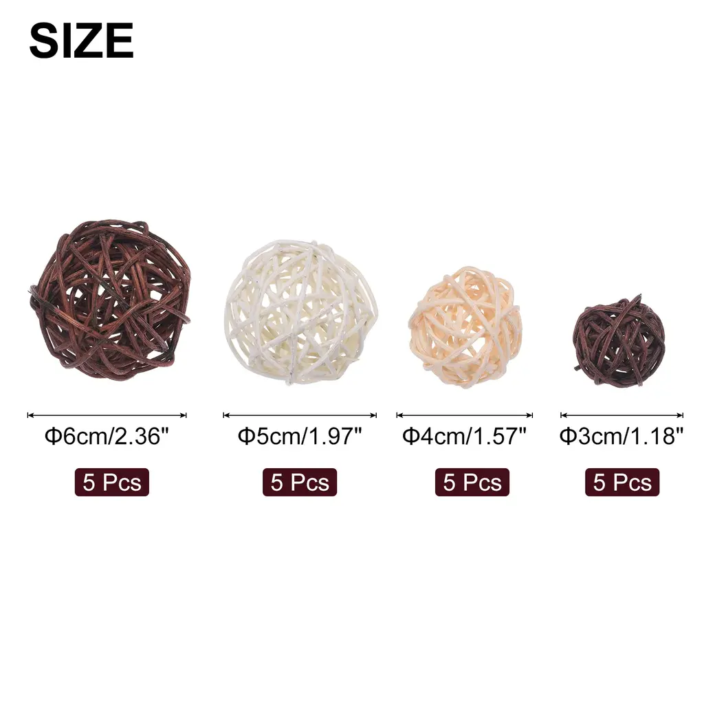 What is this?These vase fillers for home decor are handcrafted, and made of woven rattan wood, lightweight, durable, and colorfast, ensuring long-lasting beauty. Suitable for DIY crafts, perfect as table centerpieces, vase bowl fillers, craft supplies, wedding, party, and house decorations, flower arrangements, aromatherapy accessories, etc.What will I get?In the package of 20pcs orbs rattan decor, 6cm white x 9pcs, 5cm lake blue x 9pcs, 4cm sky blue x 9pcs, 3cm gray x 9pcsColor: White/Lake Blue/Sky Blue/Gray4 Sizes: 6cm(2.4")/5cm(2")/4cm(1.6")/3cm(1.2")Material: RattanAre there any advantages of the product?Use these wicker rattan decorative balls for DIY crafts, aromatherapy accessories, garden decoration, table centerpieces, wall decor, and more.How to use it?Wicker rattan decorative balls are very suitable for DIY craft projects. You can spray your creativity and imagination, such as hanging these wicker rattan balls on the walls, threading them with lights, or putting them in a transparent vase to create a pleasant atmosphere and add a more natural feeling to your room.What should I notice?Whether you are decorating for a wedding, birthday, festival, Christmas, beach table, or just decoration your home or office, these vase fillers are the perfect addition.