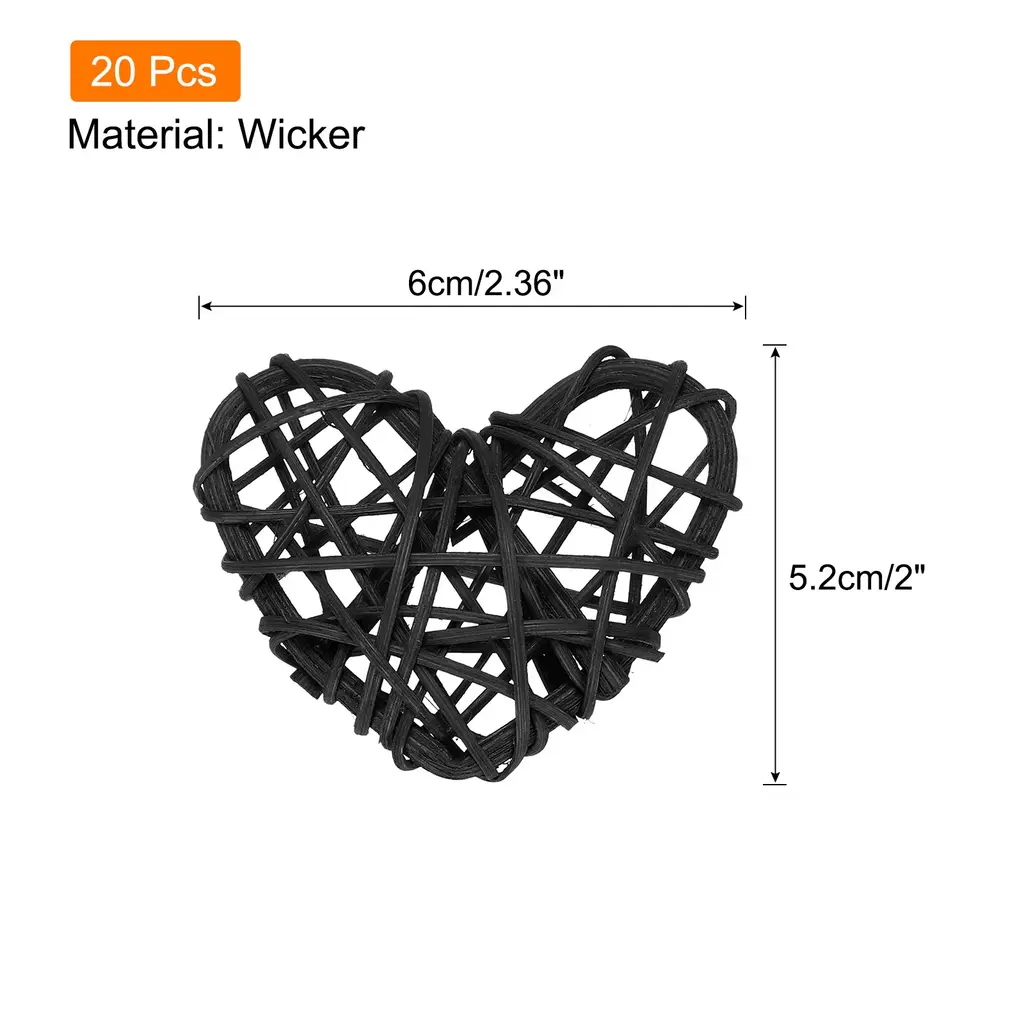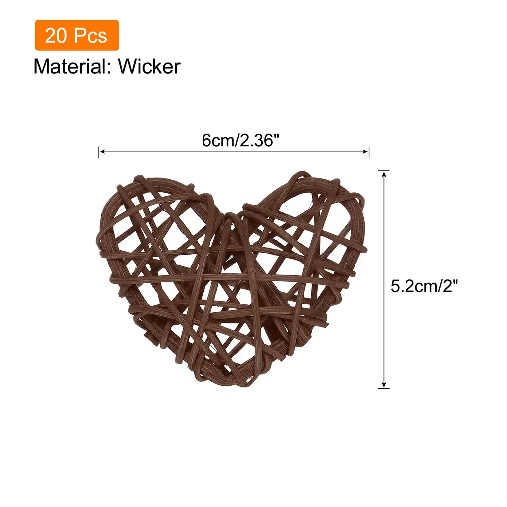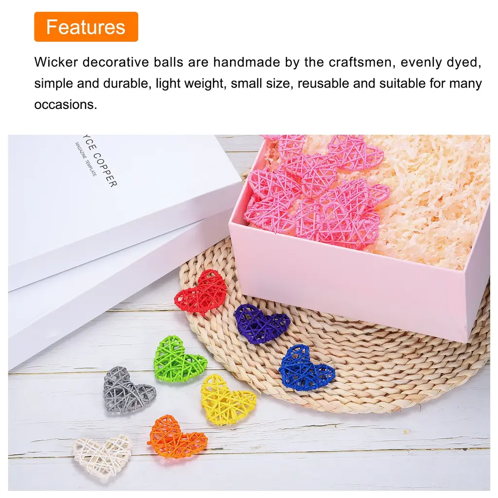 Enhance your DIY craft projects and home decor with these 20Pcs Heart Rattan Ball Vase Fillers. These natural wicker balls are perfect for adding a touch of nature to your flower arrangements, dining table, or Christmas party decorations. Each ball measures 2.36 inches in diameter and is handmade by skilled craftsmen for a simple and durable design. Made from light green wicker, these decorative balls are evenly dyed, lightweight, and reusable. Let your creativity shine by incorporating these heart-shaped rattan balls into your DIY crafts, whether it's hanging them on the wall, stringing them with lights, or placing them in a clear vase. Please note that due to their handmade nature, these wicker decorative balls may have slight deviations in size, color, and shape.Features: