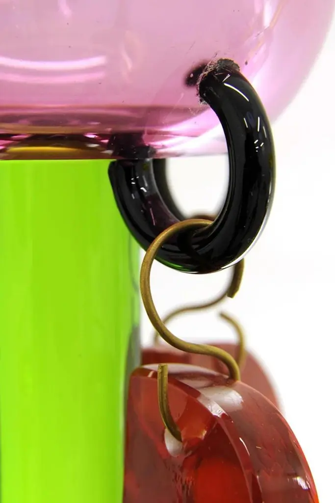 The Clesitera glass vase with pendant, was originally designed by Ettore Sottsass in 1986. The vase is blown glass, and signed on the base, for further information please see authenticity info below. Ettore Sottsass was born in Innsbruck in 1917. In 1939 he graduated in architecture at the Politecnico di Torino one of the most influential and important figures of the last century, architect and designer, he has participated in all radical movements whether created from the 1970s and 1980s. In 1981 he founded the Memphis Group, a group that has radically changed the scenario of Italian and world design. Honored with numerous international awards, was winner of the Golden Compass in 1959. He designed the first laptop "Valentina" by Olivetti. He died in 2007 at the age of 90 years.Memphis is the great cultural phenomenon of the 1980s that revolutionized creative and commercial logics in design. Born from the idea of Ettore Sottsass and a group of young designers and architects, in Milan, coupled in the years by famous designers from the international scene, Memphis turned upside down all of the existing parameters on living. Ettore Sottsass as the backbone of the group, design gained a new concept and expression through new shapes, materials and patterns, expanding the creative limits of the industry. Memphis became a symbol of new design. Its influence is still clear in various sectors of production and beyond.Additional Info:- Dimensions: H 19.75 inches- Materials: Glass- Due to the product material and production process, the colors and dimensions for this product may vary.- Pricing: Prices do not include VAT.- Purchased products are shipped with forms of authenticity by Memphis Milano. Glass and Silver items as well, contain an engraving which shows the signature of the designer, and the year which the product was originally designed in.