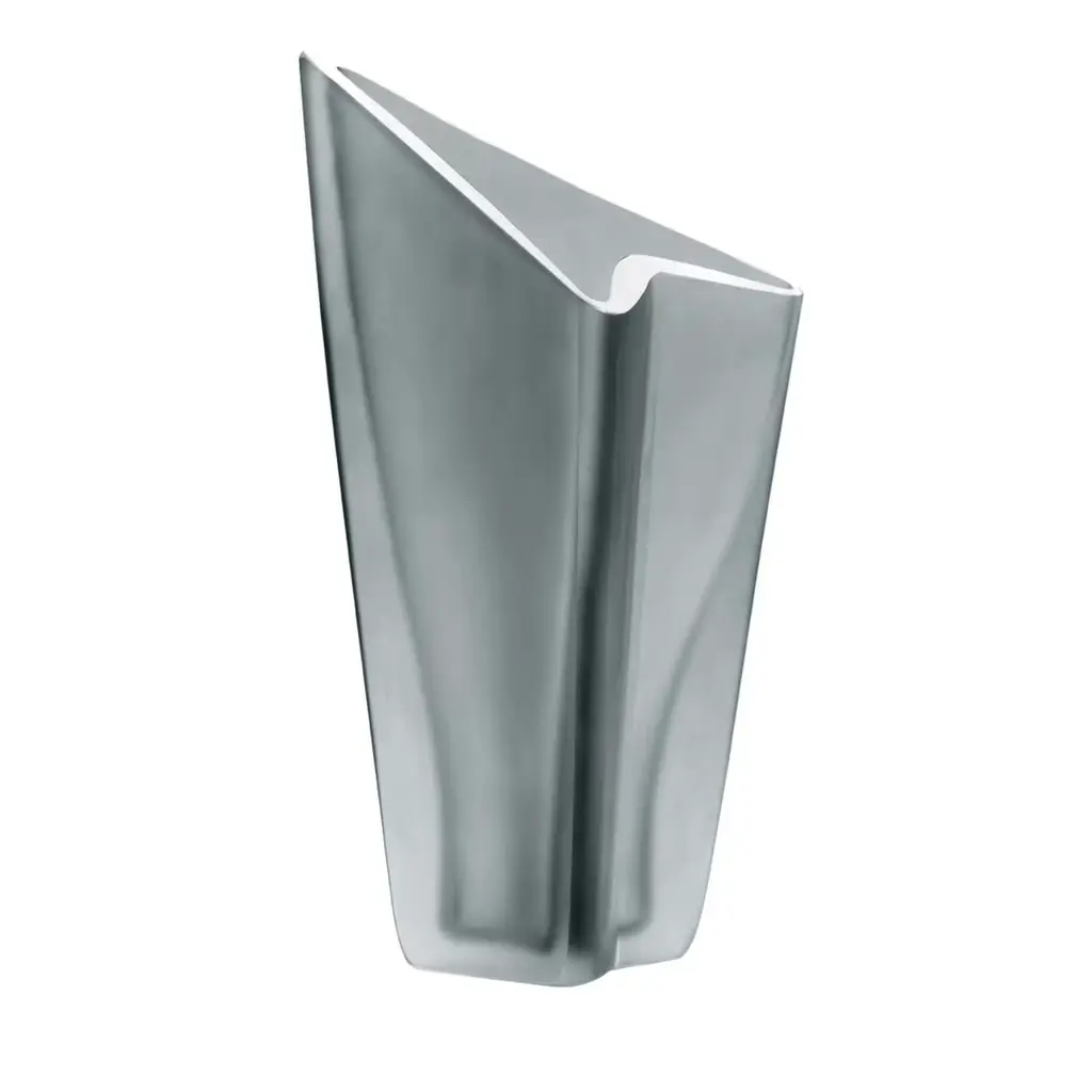 21st century Alessandro Mendini Freccia large vase in Murano glass various colors.Designed by Alessandro Mendini, Freccia is a triangular base vase with an integral side which serves to give both direction and an arrow shape. The top is diagonal instead of horizontal, in order to obtain a dynamic form emphasized by the matte finish of the Murano blown glass. As with all Purho’s products, Freccia is available in twenty-one colors or bespoke personalization and in two different sizes.Available colors:Transparent blown glass01. Ice crystal 02. Milky white 03. Honey 04. Ruby Venice 05. Amethyst pink 06. Coffee 07. Amber yellow 08. Capri yellow 09. Mandarin orange 10. Oriental red 11. Green apple 12. Caribbean green 13. Green lagoon 14. Emerald green 15. Blue Mediterranean 16. Peacock blue 17. Ocean blue 18. Florence purple 19. London grey 20. Black gondolaSpecial processing techniques21. Gold leaf.