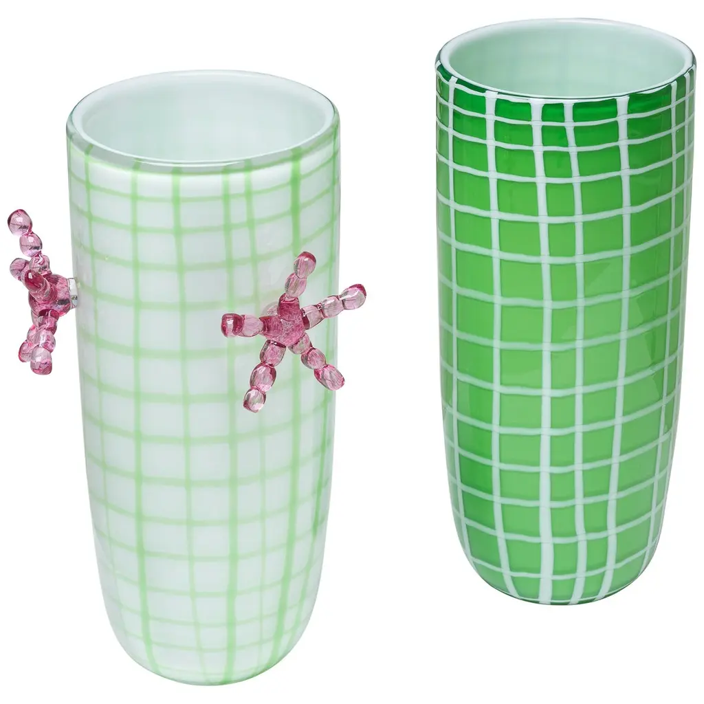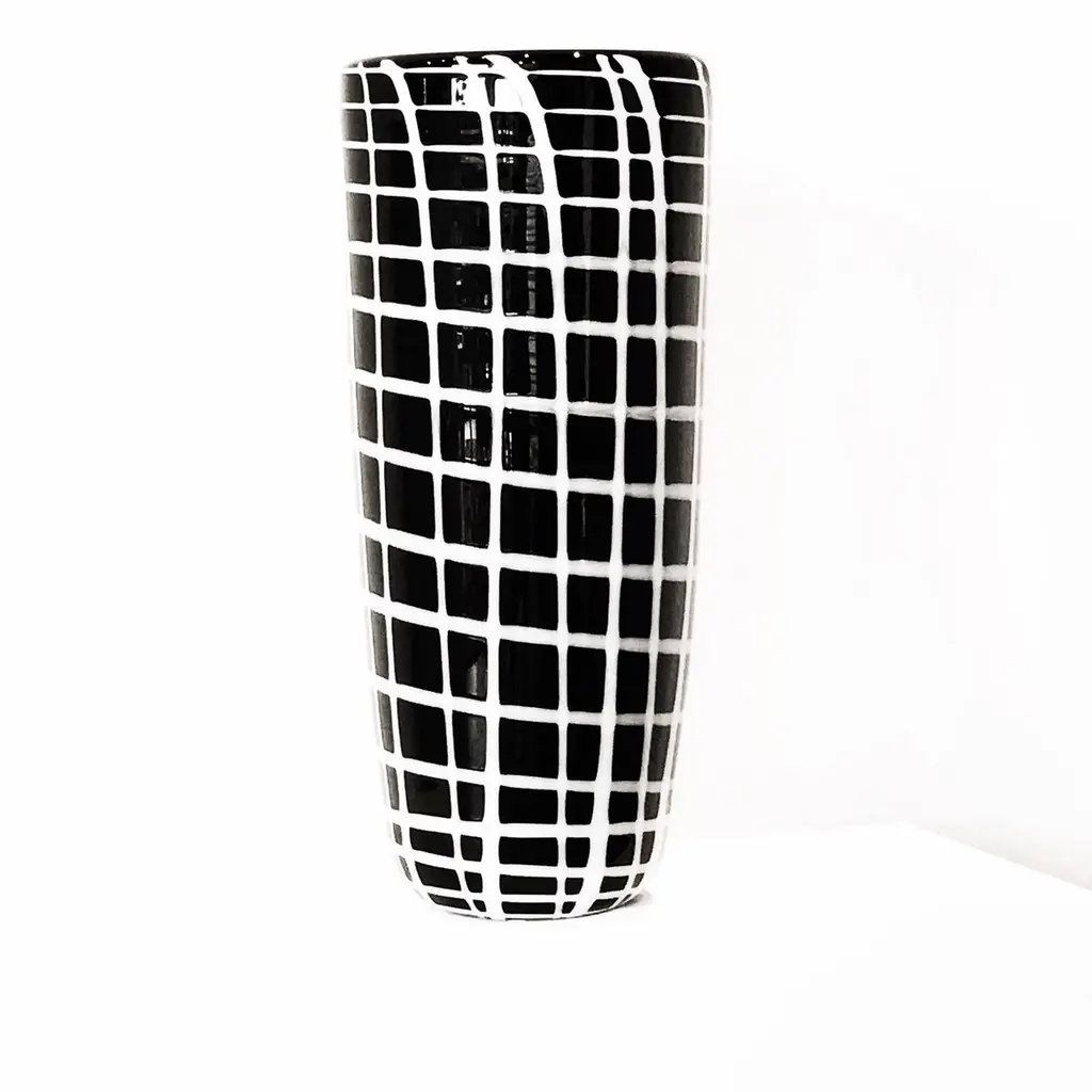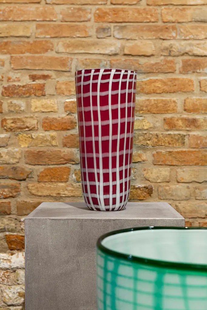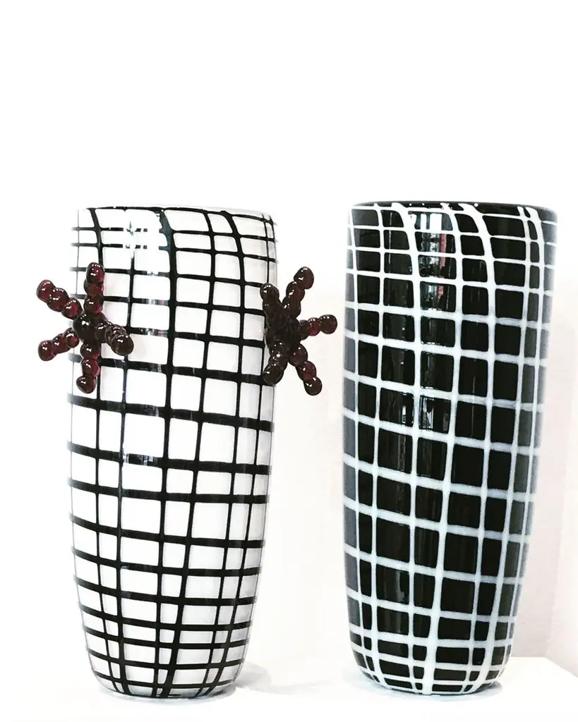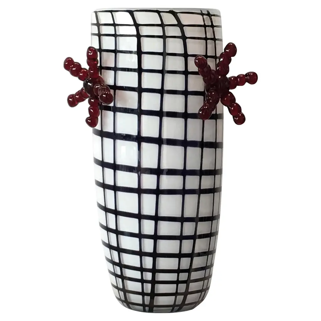 21st century Elena Cutolo EDIE vase Murano glass various colors.Edie Sedgwick was the muse of Andy Warhol, a symbol of the 1960s, always wearing oversized earrings and black socks. Elena Cutolo, ta- lented designer trained under the guidance of Ettore Sottsass, has imagined a pair of vases and a large bowl inspired by Edie’s wardrobe and jewellery collection. This is how the family was born: Edie ’60 is a vase with earrings available in limited edition of nine numbered pieces, Edie is the vase without earrings while the Edie Bowl is a large centrepiece.The whole family is made of Murano blown glass decorated with a vaguely geometric pattern.Edie is available in the following combo of colours: black base, white stripes or red base, white stripes or green base, white stripes.Surprising, in their own way, they are a great example of contemporary creativity rooted in a long tradition of design and craft.Colors available: Black / White - Red / White - Green / White.