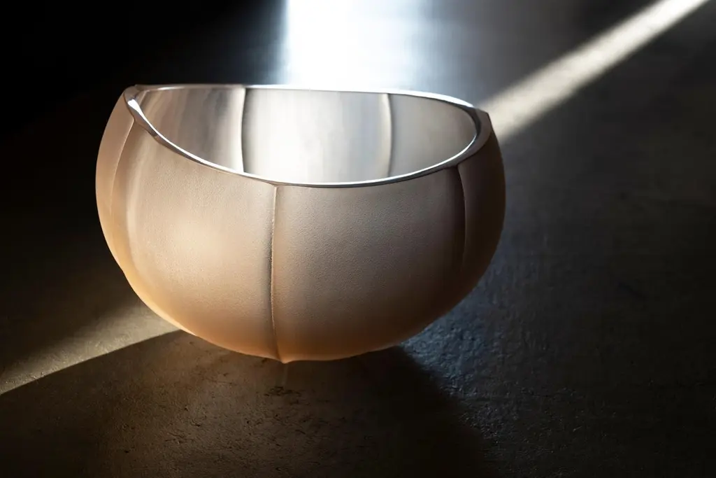 Linae medium vase, Murano glass, designed by Federico Peri, 21st century.The Linae vase, circular pots with a blunt rim are made in solid color and thick blown Murano glass, are available in three different shapes and different finishes / incisions on the glass. The common starting shape is the sphere, elongated or squashed flat. The tallest vase, Linae large, has horizontal incisions creating a pleated effect, a concertina, as if the object could ideally stretch or tighten at will. The medium size, Linae medium, experiences the effect of gravity more strongly, and is characterized by 7 vertical ribs made by scooping out the glass. The small vase, Linae Small, mix of the two other vases, is similar in shape to the middle-sized one and also feels the force of gravity. The surface has a horizontal “ribbed” incision reminiscent of the largest vase, but on a much smaller scale.Murano glass colors available: crystal / smoke / rose / blue.