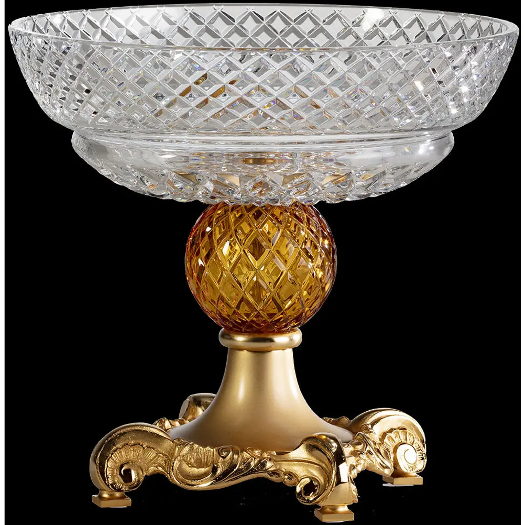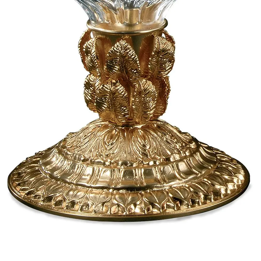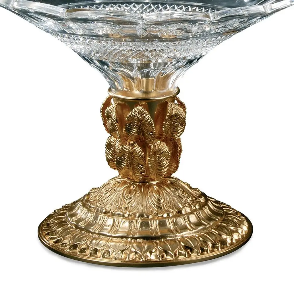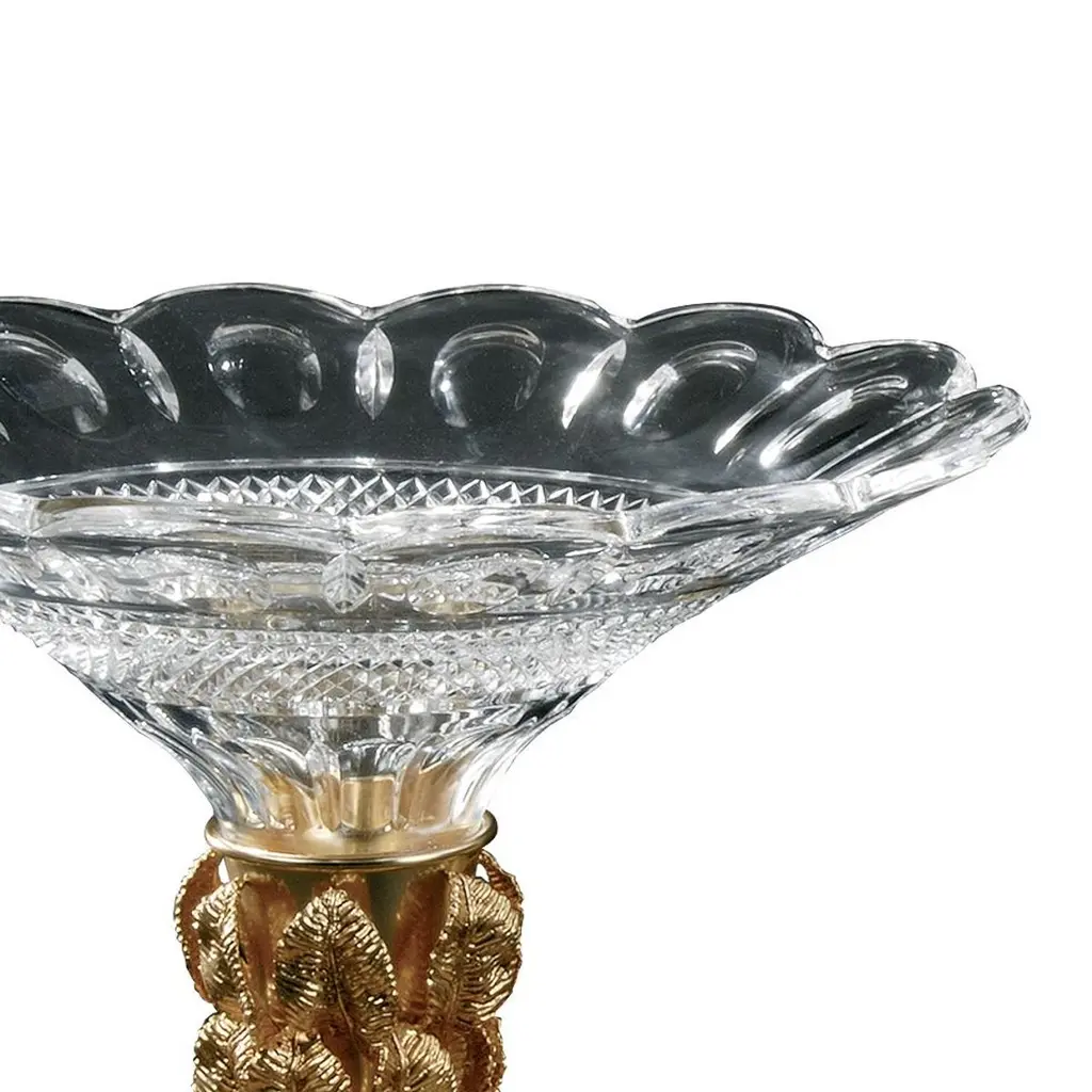 21st Century hand carved clear crystal and golden bronze vase. This vase is finely chiseled lost wax castings and hand-grounded crystal. On request to customer can modificate the color of crystal: pink, amber, amethist etc... and we can change also the metal finishing: french gold, burnished, dark burnished, antique silver and patinated gold so you can match it with any decor. The style of this vase is classic and can be inserted in the best possible way within every furniture.Each object is handcrafted and the care for every detail makes each item unique in its kind.Also Oggetti d'Arte will follow with the same passion the request of the most qualified studies of interior architecture from around the world, helping them in achievement of their most ambitious projects.