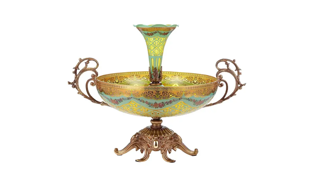 21st Century, Hand-Carved Clear Crystal And Golden Bronze Vase