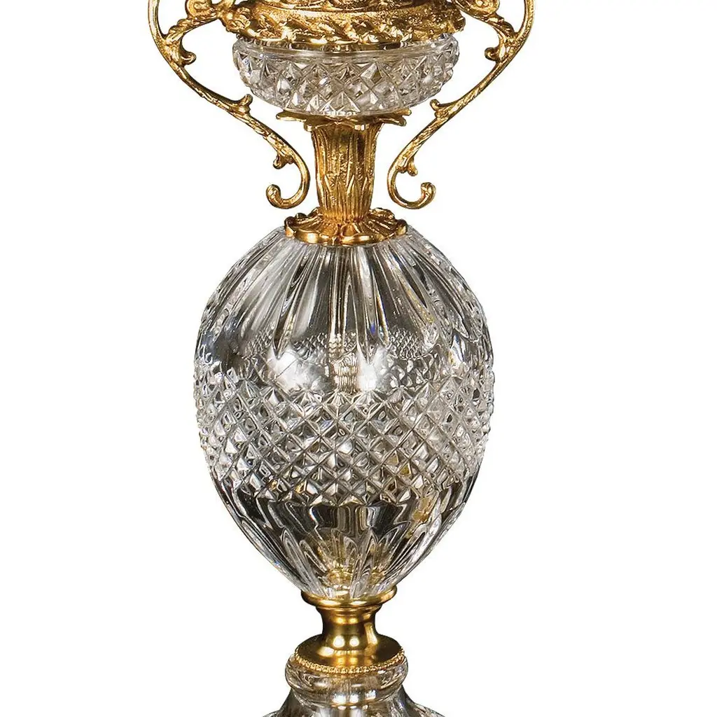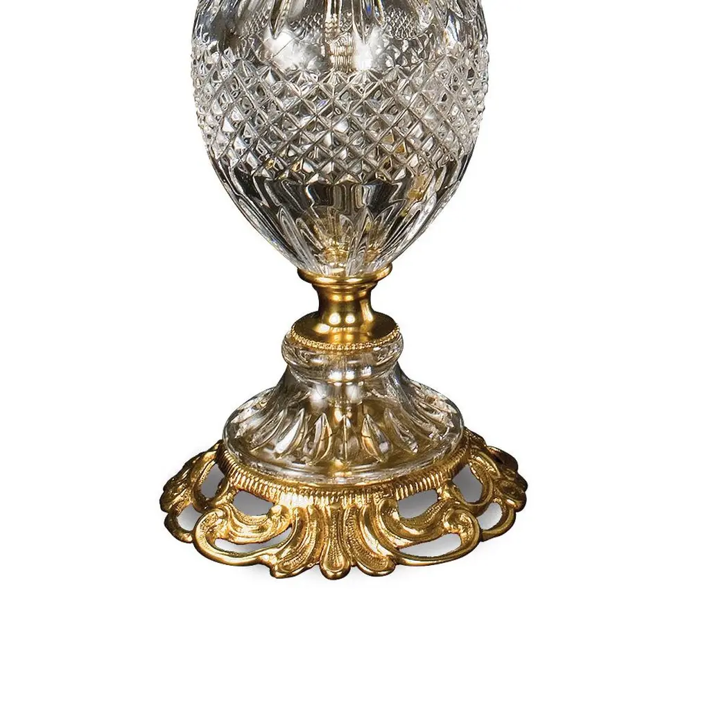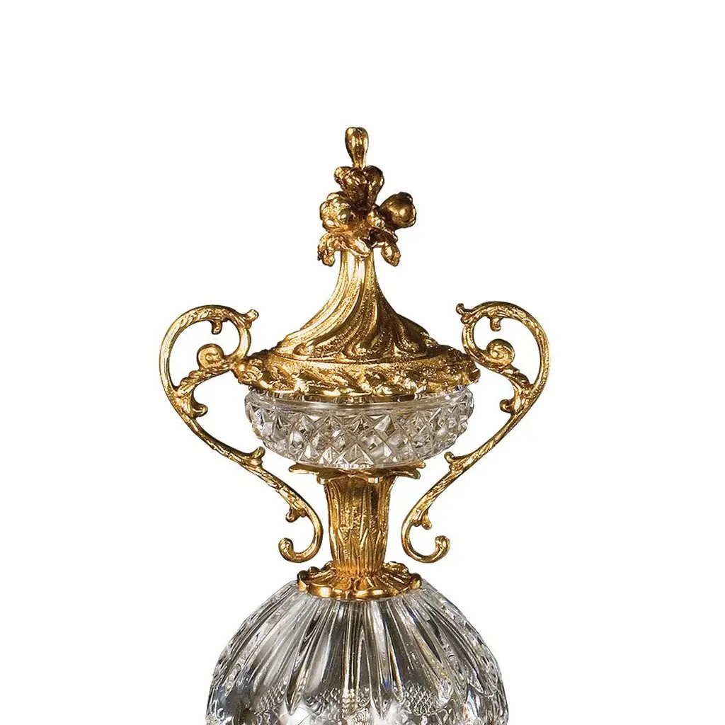 21st Century hand carved clear crystal and golden bronze potiche. This potiche is finely chiseled lost wax castings and hand ground crystal. On request to customer can modificate the color of crystal: pink, amber, amethist etc... and we can change also the metal finishing: French gold, burnished, dark burnished, antique silver and patinated gold so you can match it with any decor. The style of this vase is classic and can be inserted in the best possible way within every furniture.Each object is handcrafted and the care for every detail makes each item unique in its kind.Also Oggetti d'Arte will follow with the same passion the request of the most qualified studies of interior architecture from around the world, helping them in achievement of their most ambitious projects.