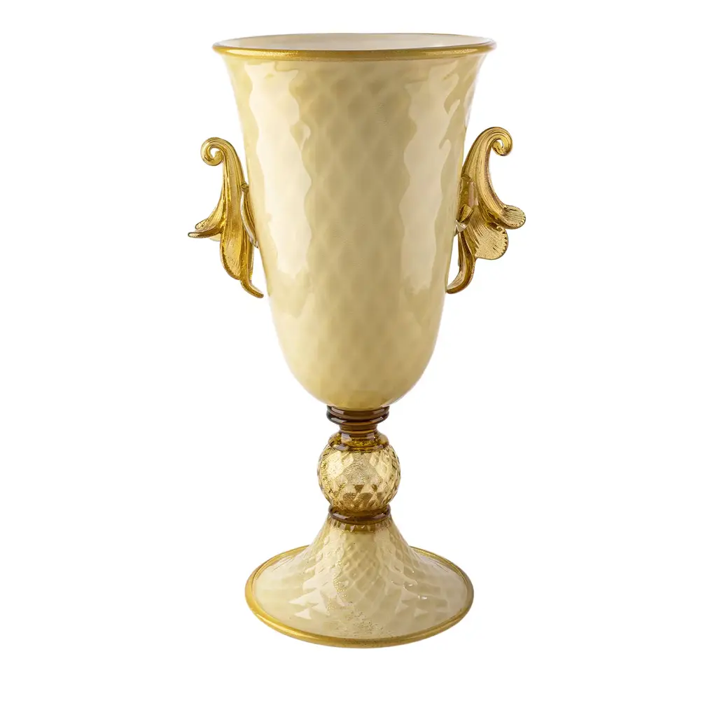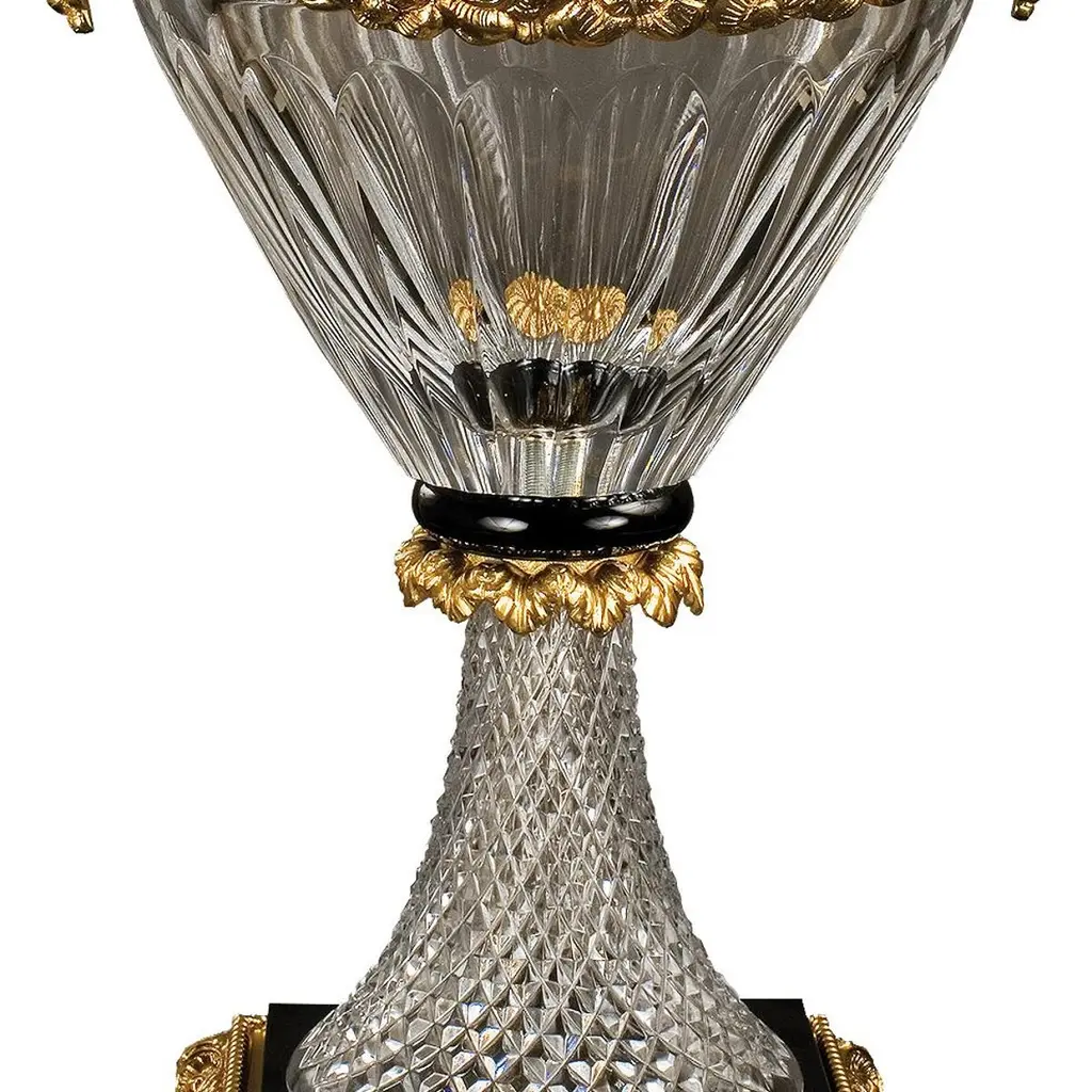 21st Century, Hand-Carved Clear Crystal And Golden Bronze Vase