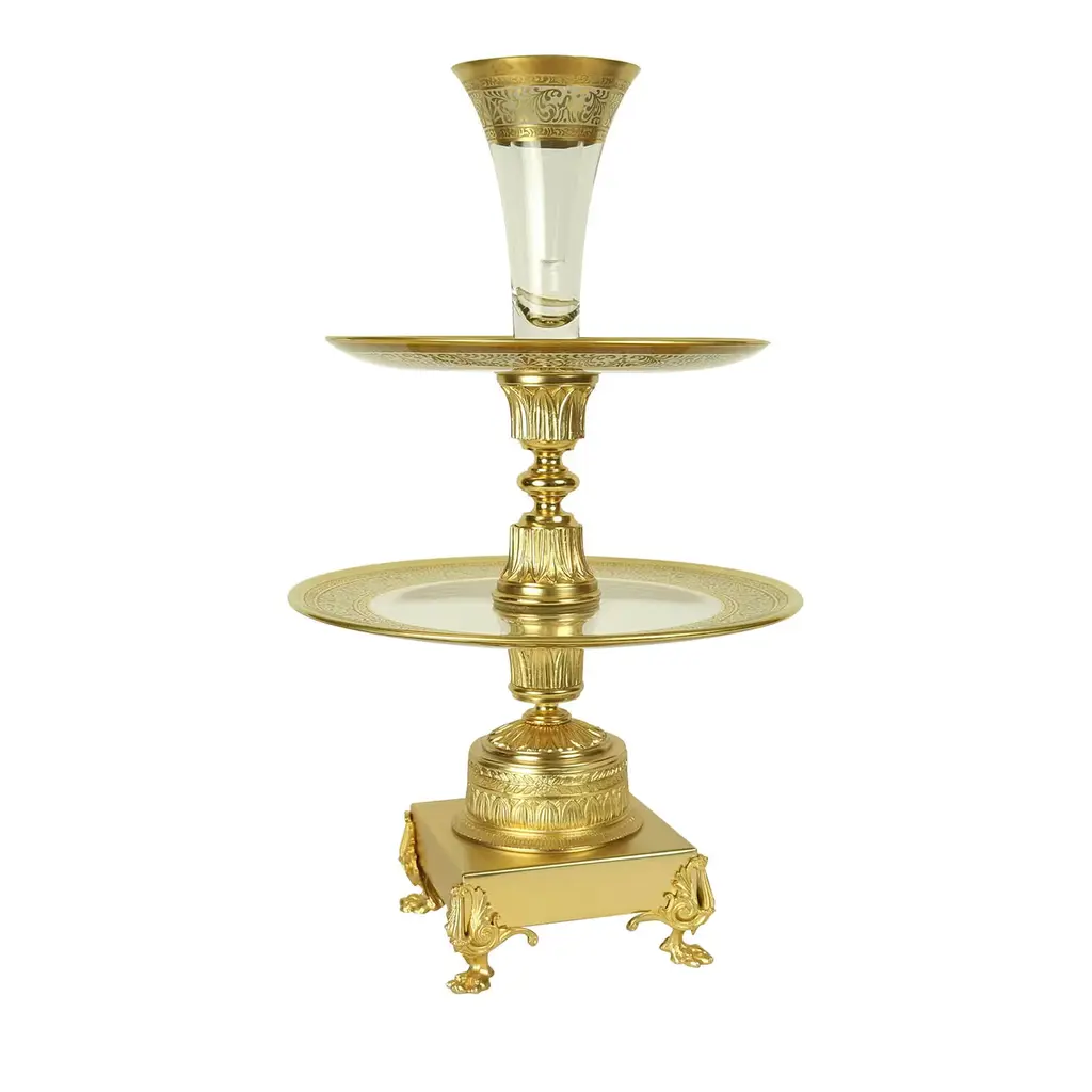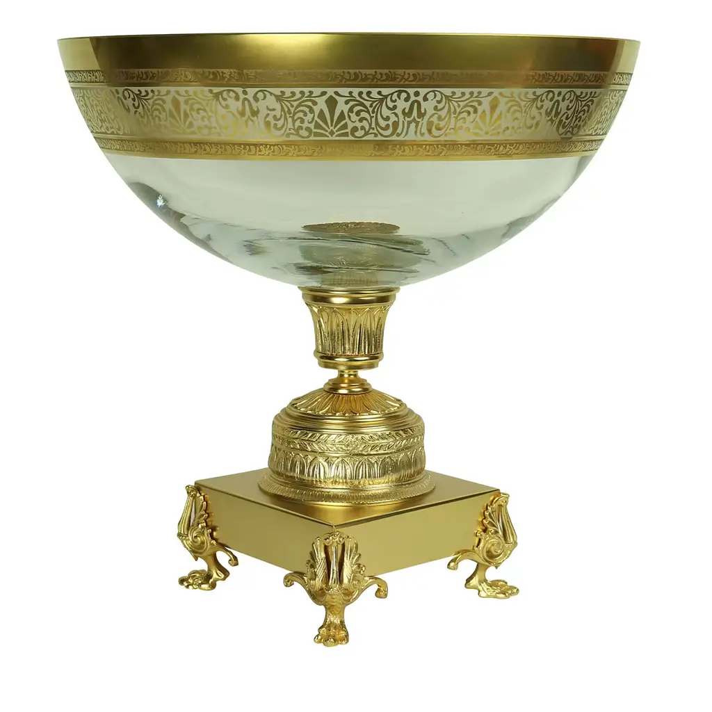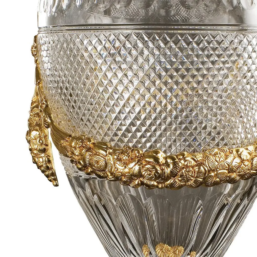 21st Century hand carved clear crystal and golden bronze vase. This vase is finely chiseled lost wax castings and hand ground crystal. On request to customer can modificate the color of crystal: pink, amber, amethist etc... and we can change also the metal finishing: French gold, burnished, dark burnished, antique silver and patinated gold so you can match it with any decor. The style of this vase is classic and can be inserted in the best possible way within every furniture.Each object is handcrafted and the care for every detail makes each item unique in its kind.Also Oggetti d'Arte will follow with the same passion the request of the most qualified studies of interior architecture from around the world, helping them in achievement of their most ambitious projects.