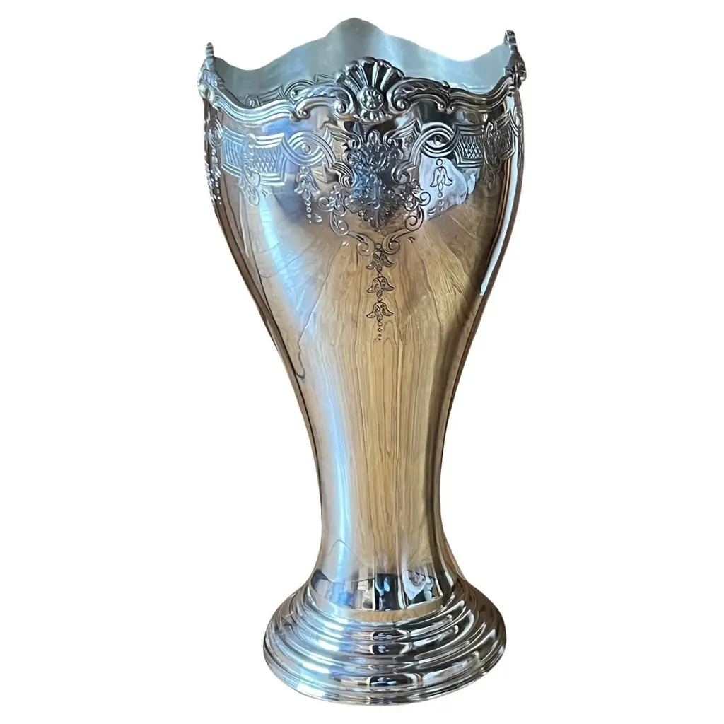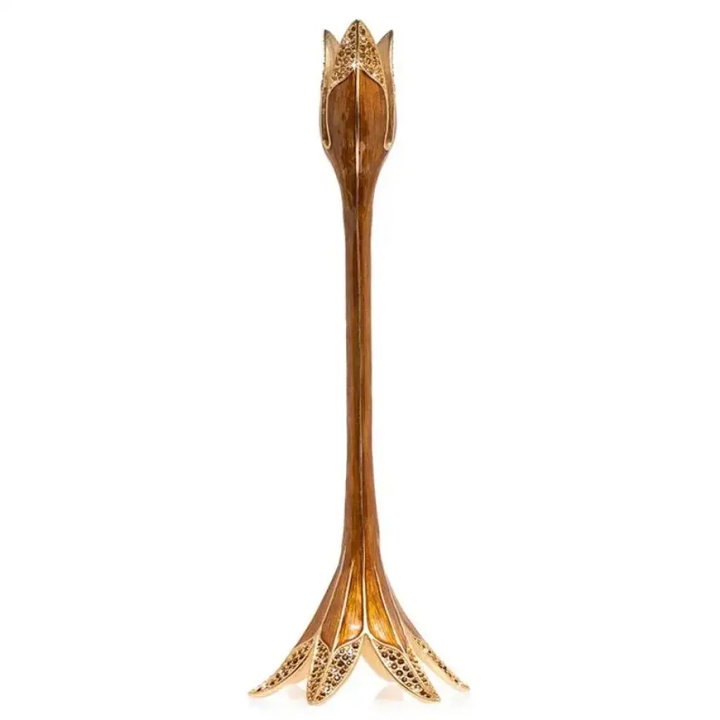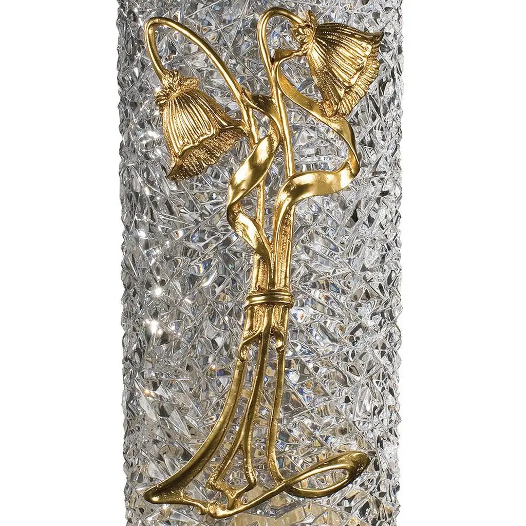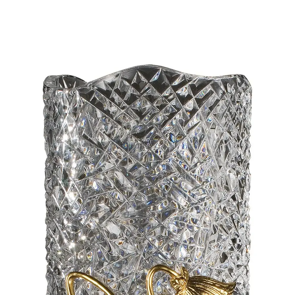 21st Century, Hand Carved Clear Crystal And Golden Bronze Vase