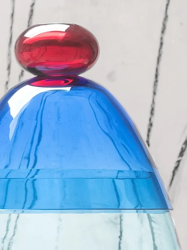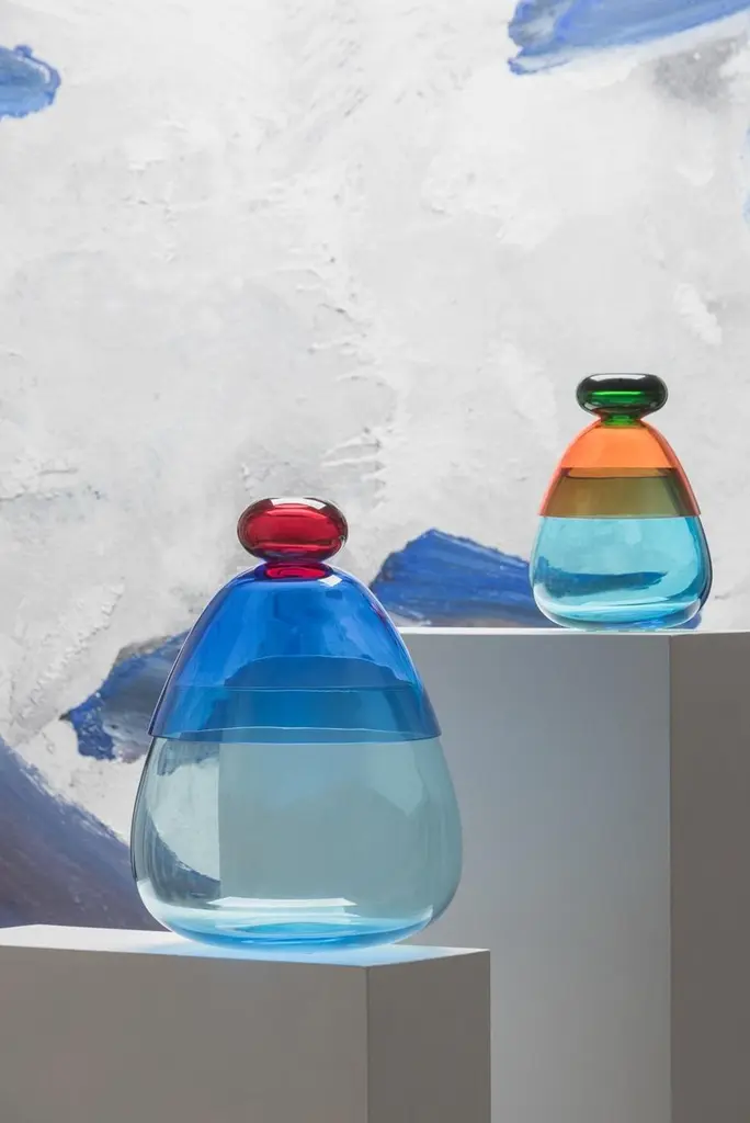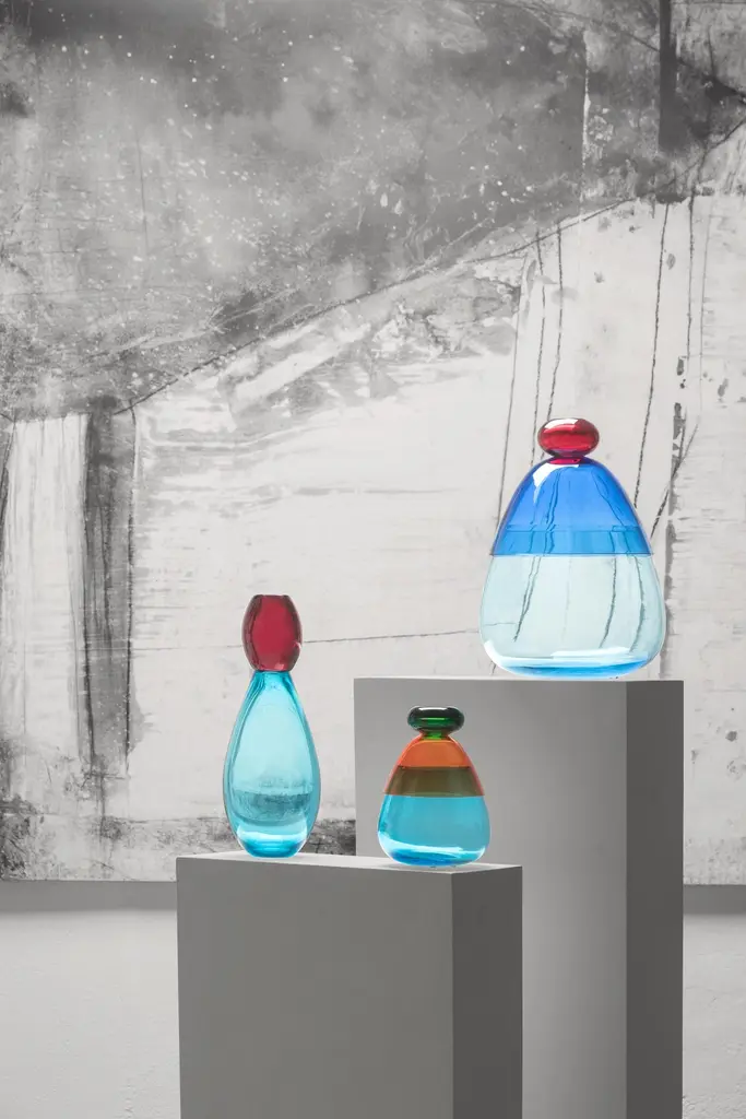 21st century Karim Rashid centerpiece Kount large vase Murano glass various colors.Kount is composed of discrete elements, a bowl and a vase, that can combine to form a stunning centerpiece. Used singly, they can be adapted for different purposes, whether aesthetic or functional. Made of Murano blown glass and designed by Karim Rashid, Kount plays with an unusual combination of bright colors that can be personalized to respond to individual needs and tastes.Available colors:Transparent Blown glass01. ice crystal 02. milky white 03. honey 04. ruby Venice 05. amethyst pink 06. coffee 07. amber yellow 08. Capri yellow 09. mandarin orange 10. oriental red 11. green apple 12. Caribbean green 13. green lagoon 14. emerald green 15. blue Mediterranean 16. peacock blue 17. ocean blue 18. Florence purple 19. London grey 20. black gondolaSpecial processing techniques21. gold leaf.