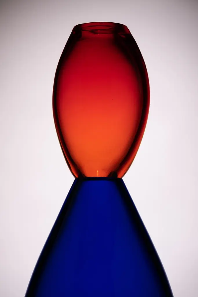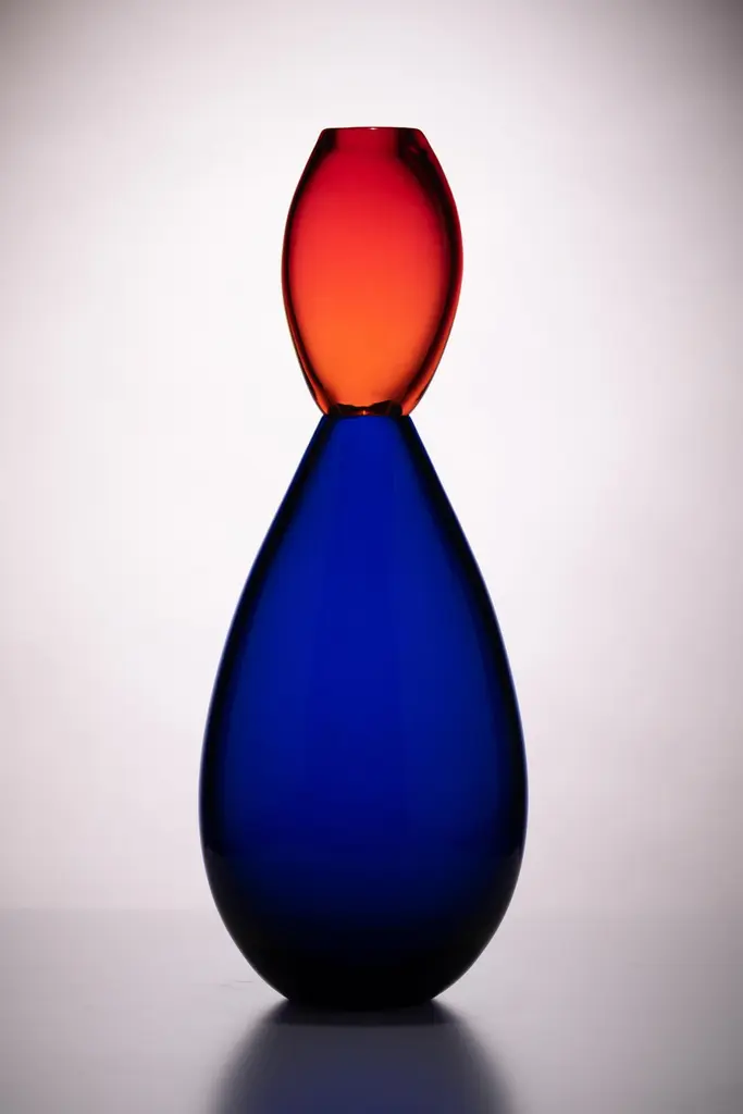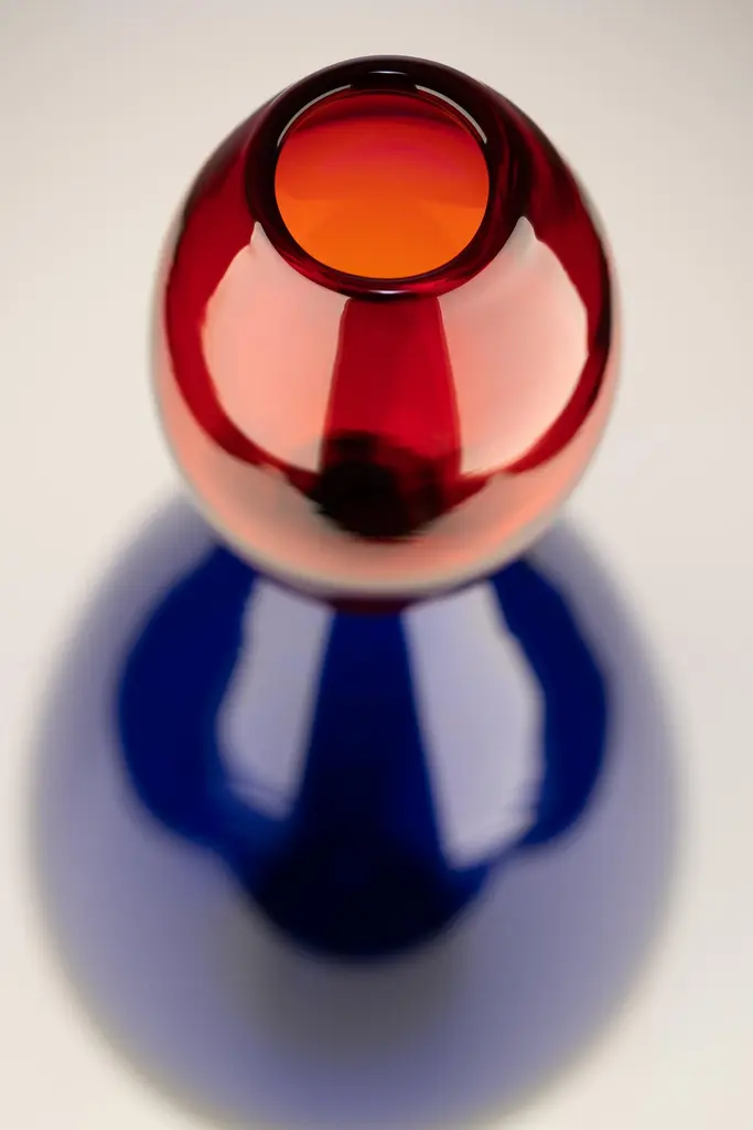 21st Century Karim Rashid King Vase Murano Glass Oriental Red And Ocean Blue