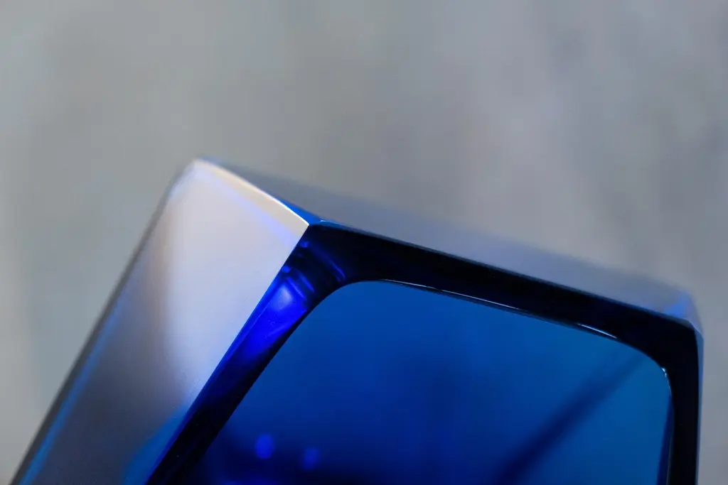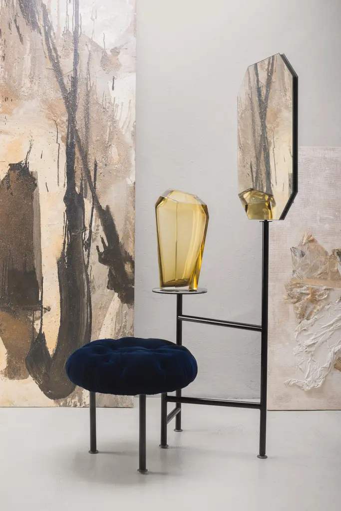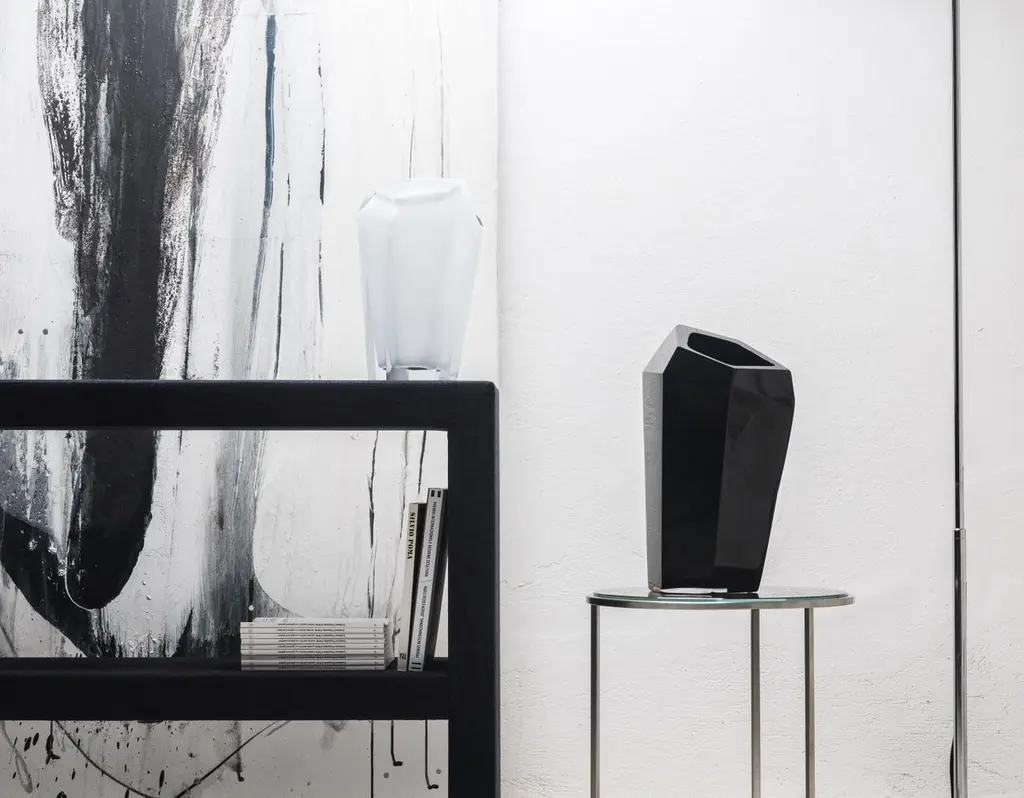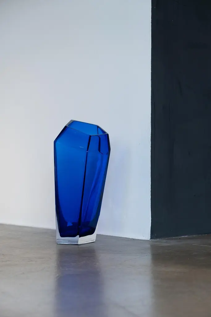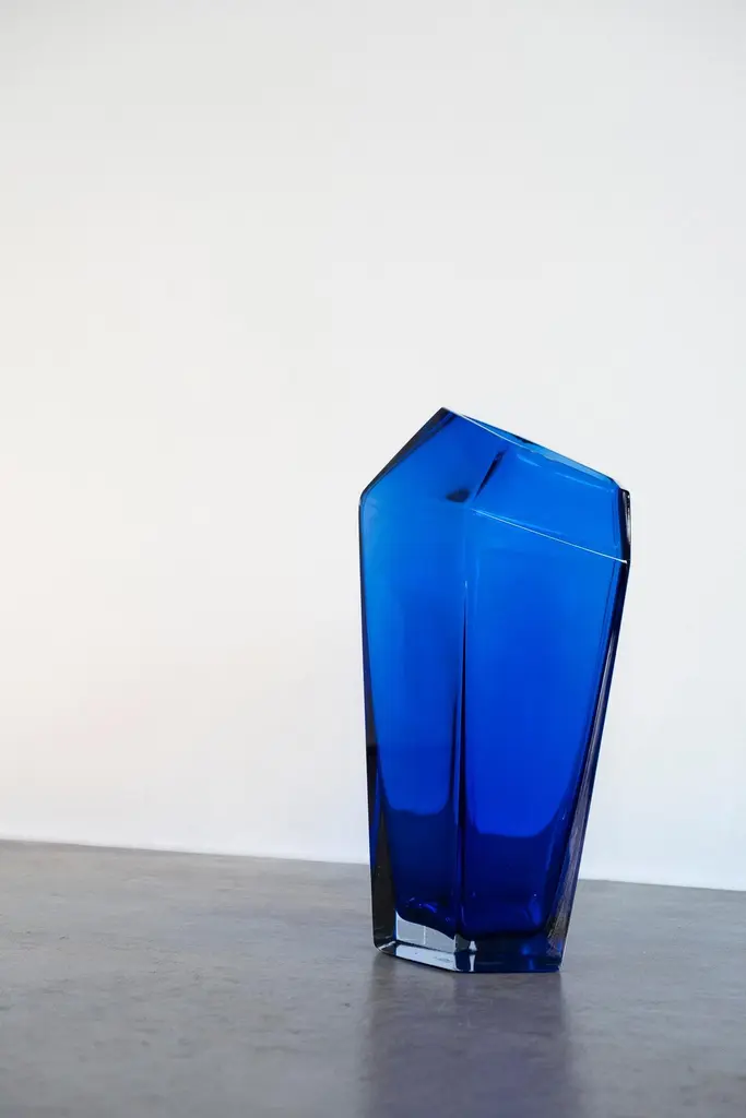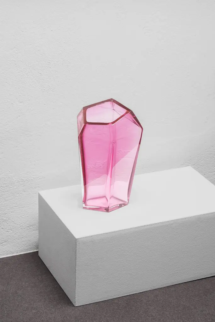Kastle vase, Murano glass, by Karim Rashid, 21st century.Karim Rashid has conceived for Purho a mini collection of bowls and vases characterized by their faceted, structural form and abstract elegance. Irresistible because of the unusual and geometrical surfaces and bold colors, Kastle are available in different sizes offering a wide range of uses. Kastle are made of Murano glass although mirror finish is available only on request.Murano Glass is available in 21 finishes and customized version.Available colors:Transparent Blown glass 01. ice crystal 02. milky white 03. honey 04. ruby venice 05. amethist pink 06. coffee 07. amber yellow 08. capri yellow 09. mandarin orange 10. oriental red 11. green apple 12. caribbean green 13. green lagoon 14. emerald green 15. blue mediterranean 16. peacock blue 17. ocean blue 18. florence purple 19. london grey 20. black gondola Special processing techniques 21. gold leaf.