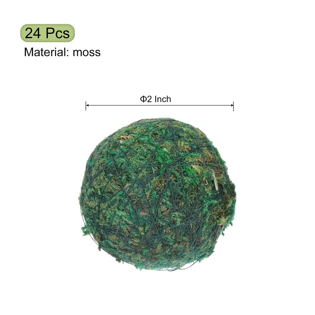 What is this?These decorative moss balls are very suitable for DIY craft projects, vase fillers, flower arrangements, home, garden, dining table, wall, Christmas party hanging decorations.What will I get?In the package: Decorative moss balls x 24 Pcs;Diameter: 2 Inch;Color: Green;Material: moss.Is there any advantages of the product?Moss decorative balls are handmade by the craftsmen, evenly dyed, simple and durable, light weight, small size, reusable and suitable for many occasions.How to use it?Moss decorative balls are perfect for DIY into various crafts and can be combined with various things. You can use these moss balls to realize your creativity and imagination and add a touch of nature to your home , such as hanging these moss balls on the wall, or stringing them with lights, or putting them in a clear vase.What should I notice?Our Moss decorative balls are handmade and may have some deviations in size, color and shape.