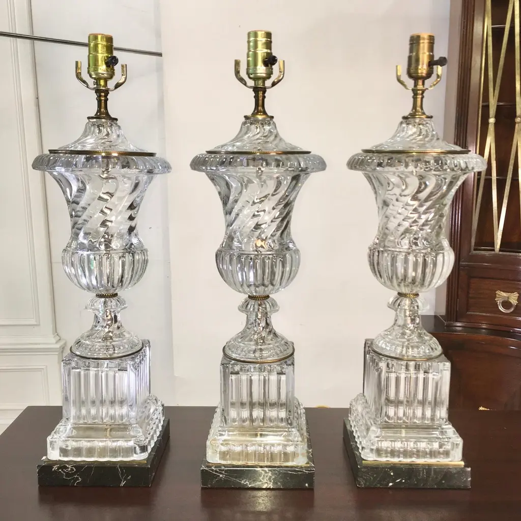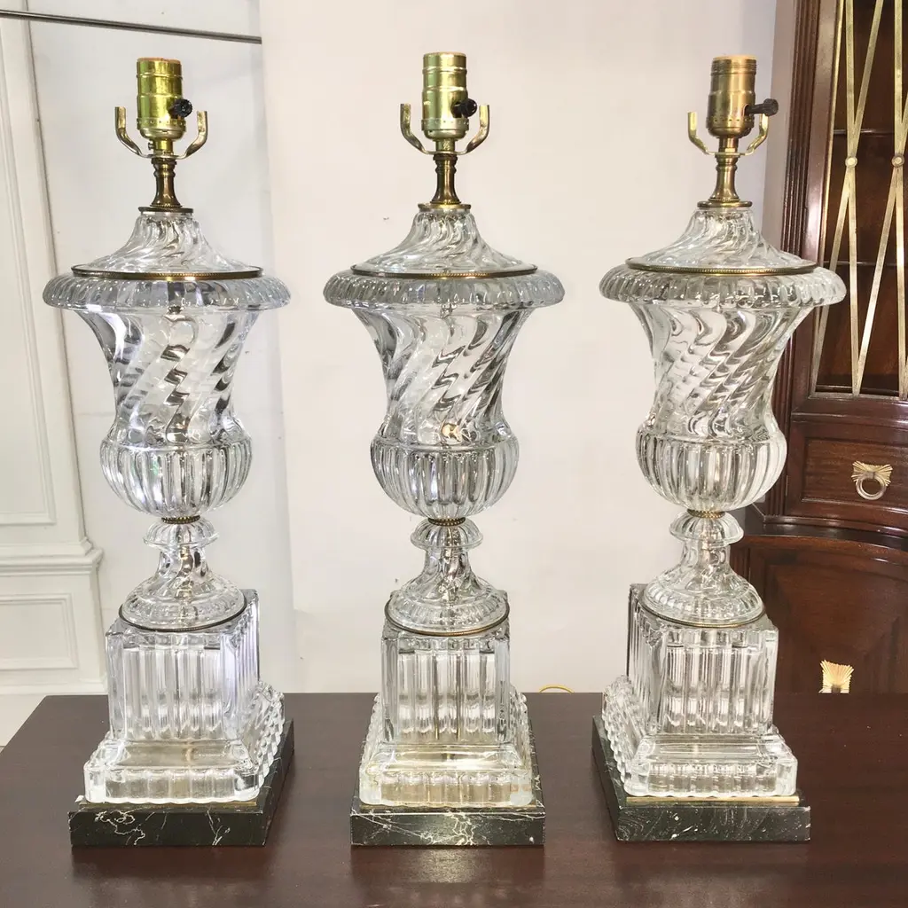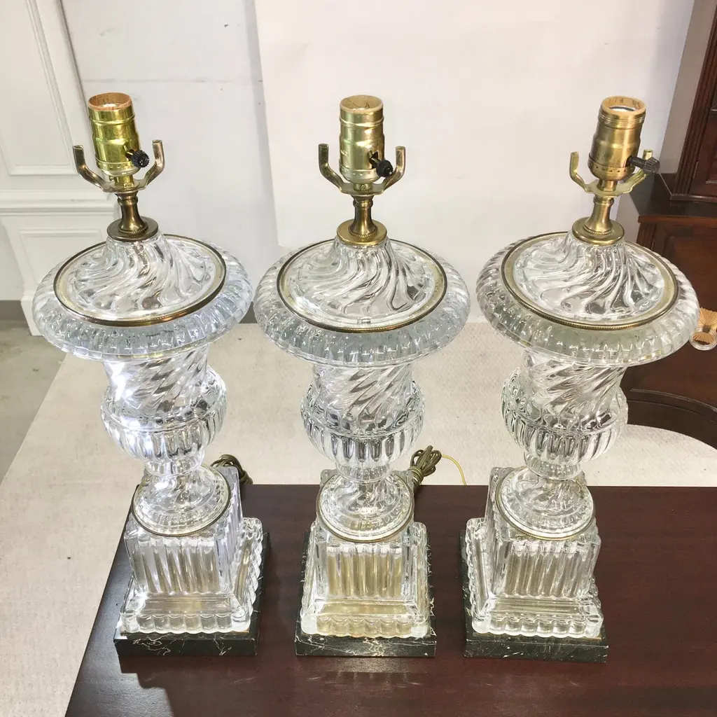 3 Baccarat Style Vase-Form Swirled Crystal Lamps By Paul Hanson