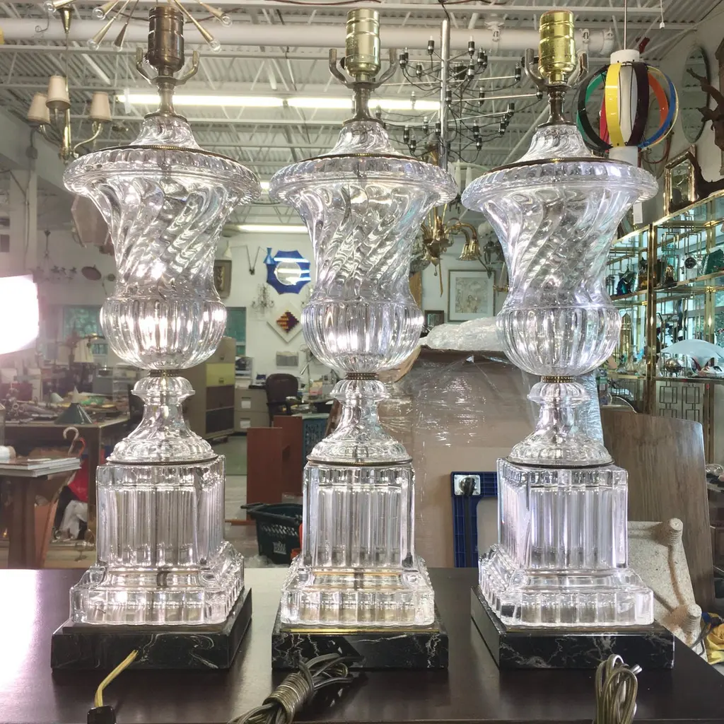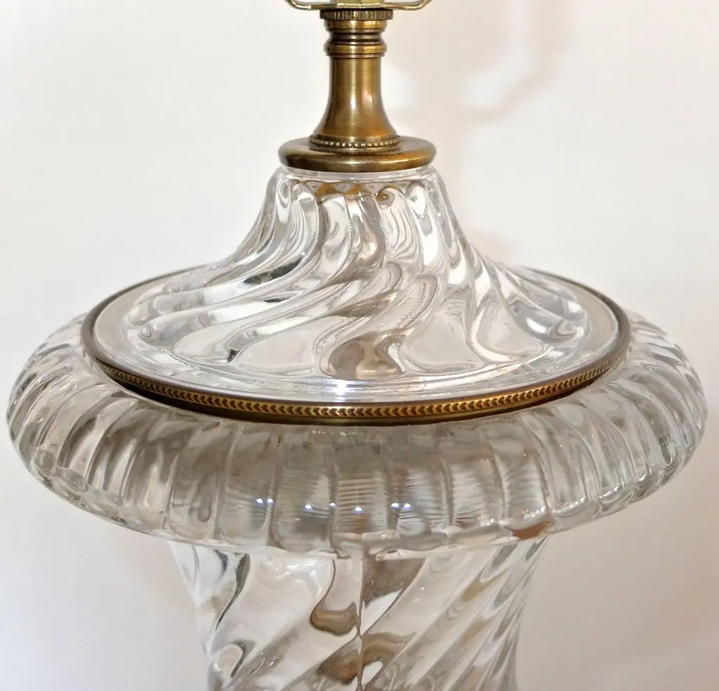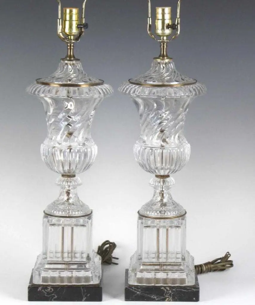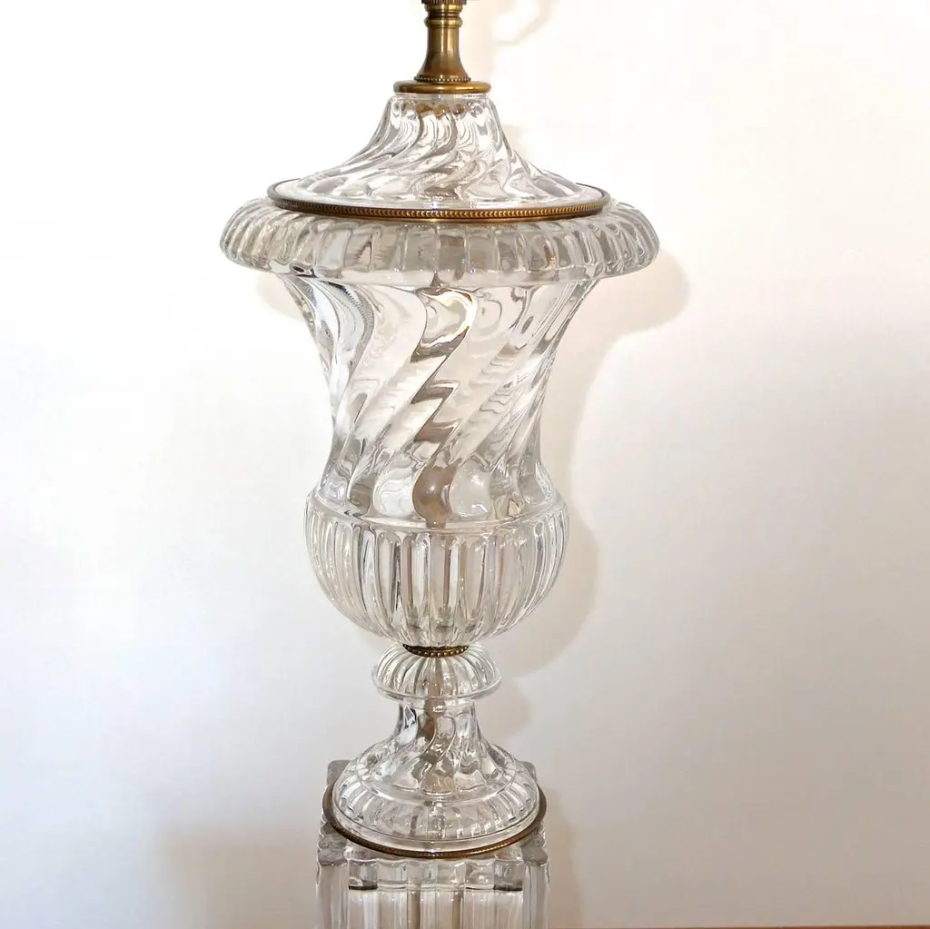 3 Baccarat Style Vase-Form Swirled Crystal Lamps By Paul Hanson