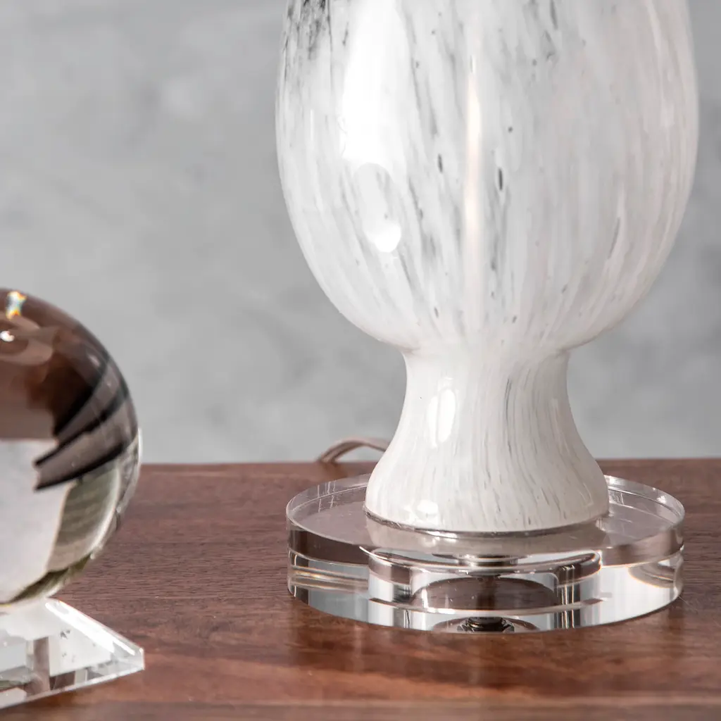 30-Inch Glass Marbleized Vase Table Lamp | Off White