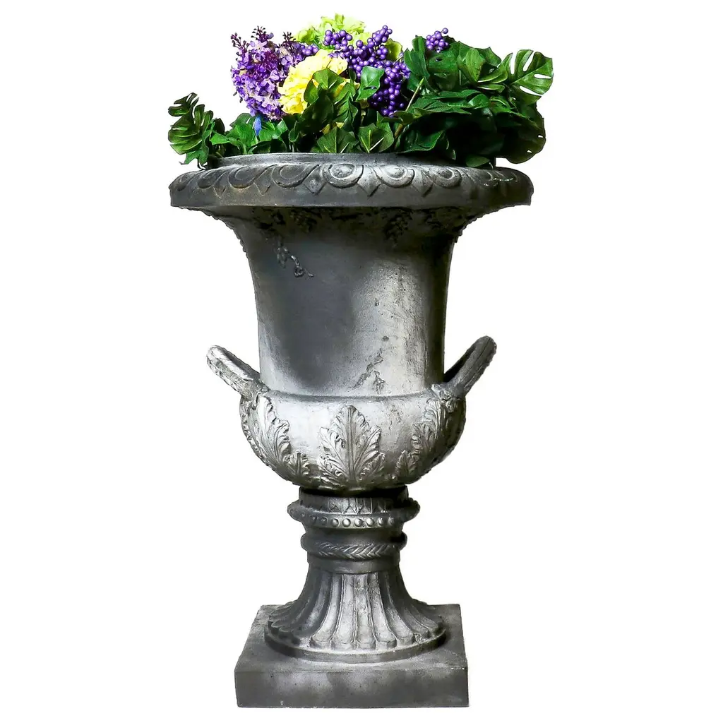 CAMPIANIA HANDLE URN - WHITE MOSS W/DRAIN HOLE