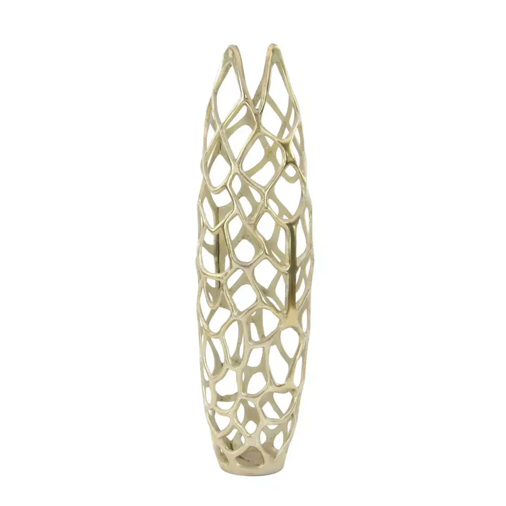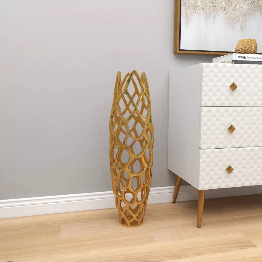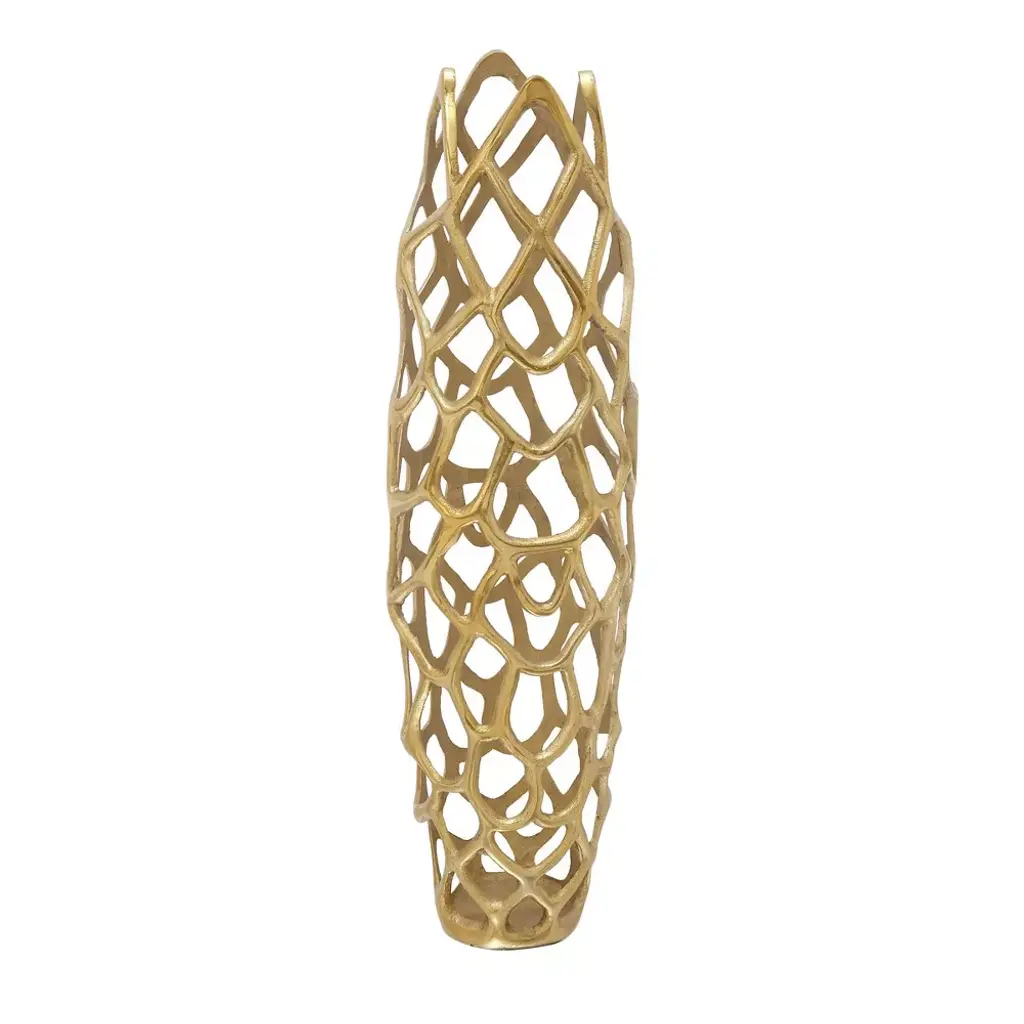 Olivia & May 31" X 9" Eclectic Woven Net-inspired Aluminum Vase Gold - Indoor Contemporary Amphora Design