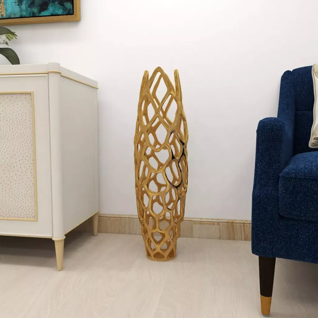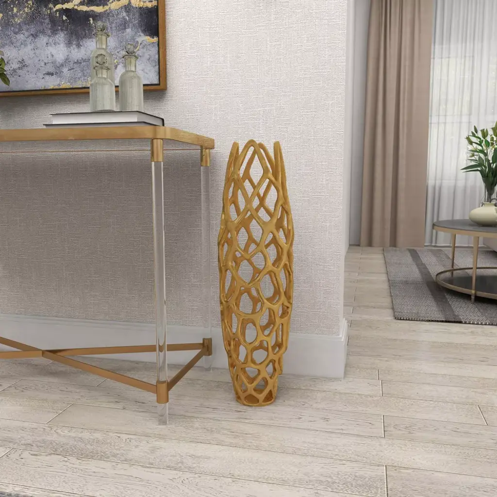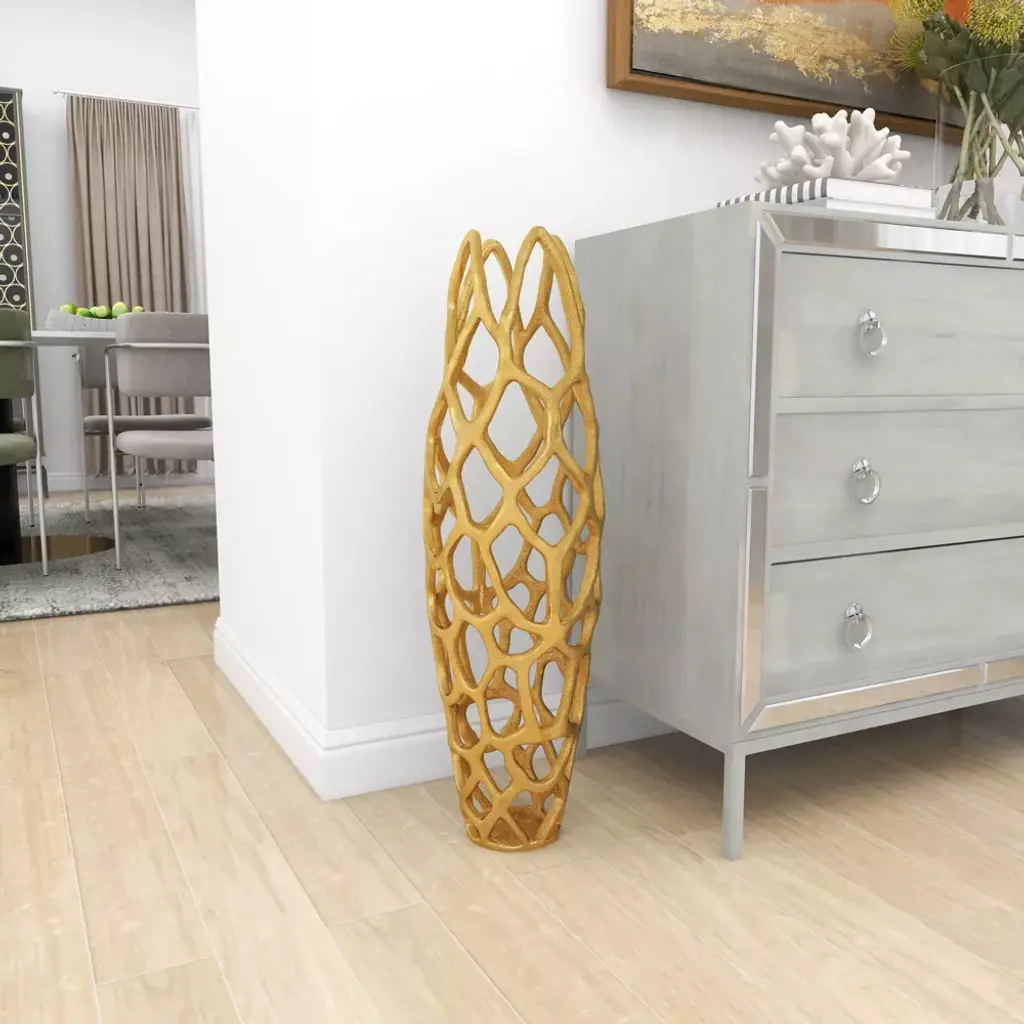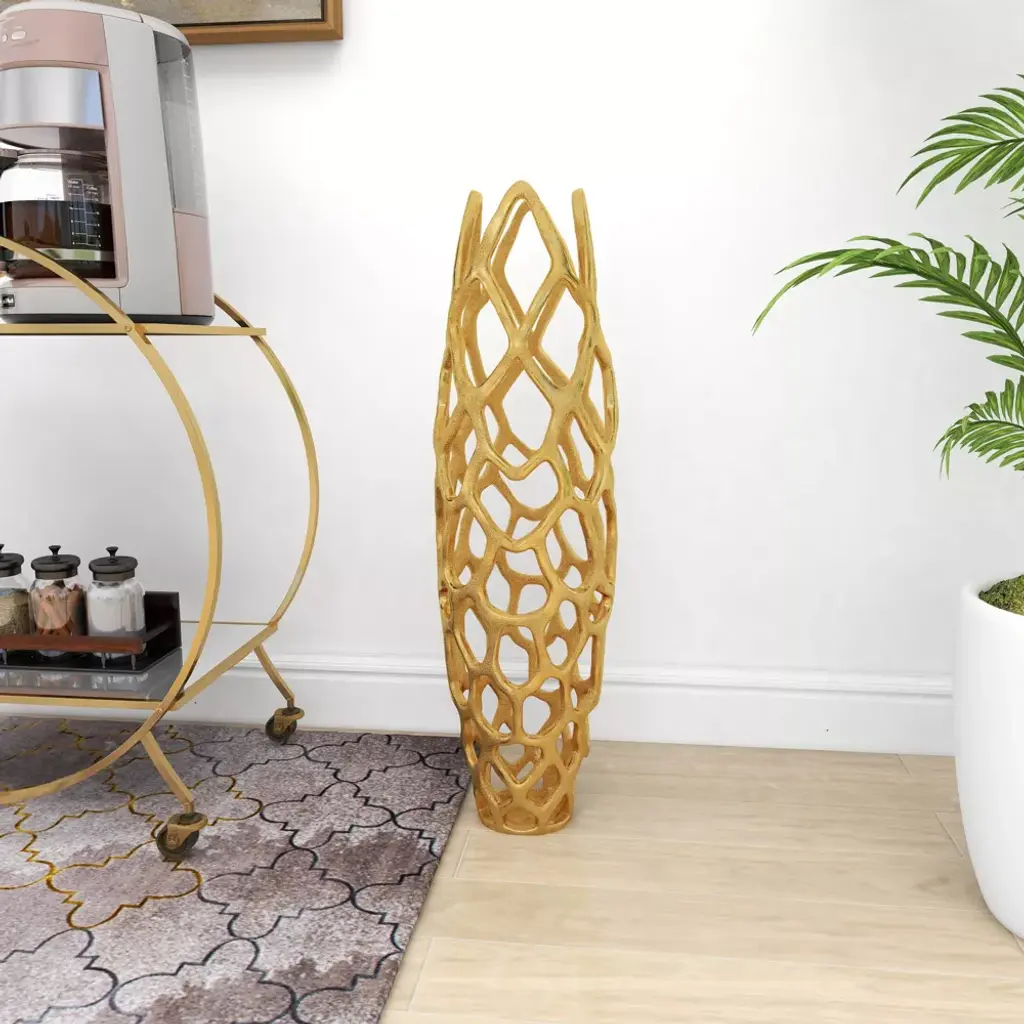 Olivia & May 31" X 9" Eclectic Woven Net-inspired Aluminum Vase Gold - Indoor Contemporary Amphora Design