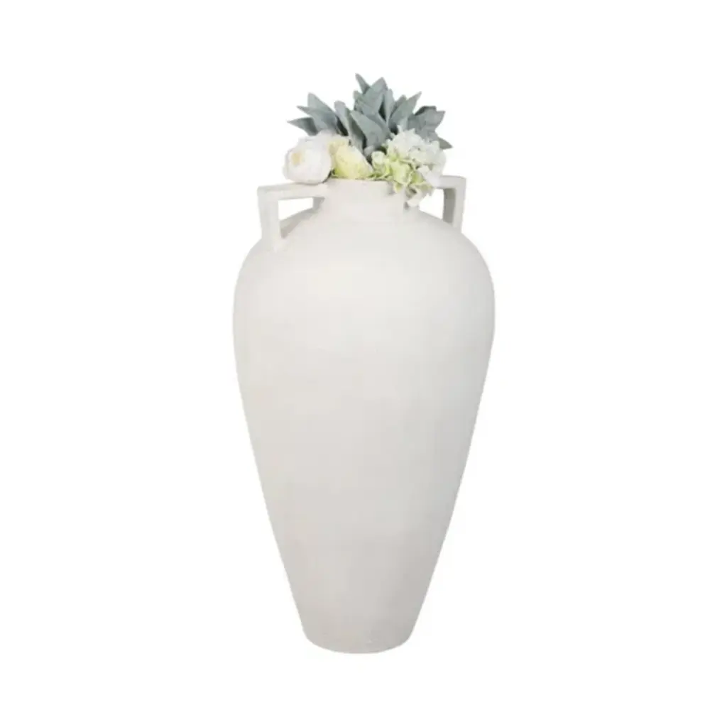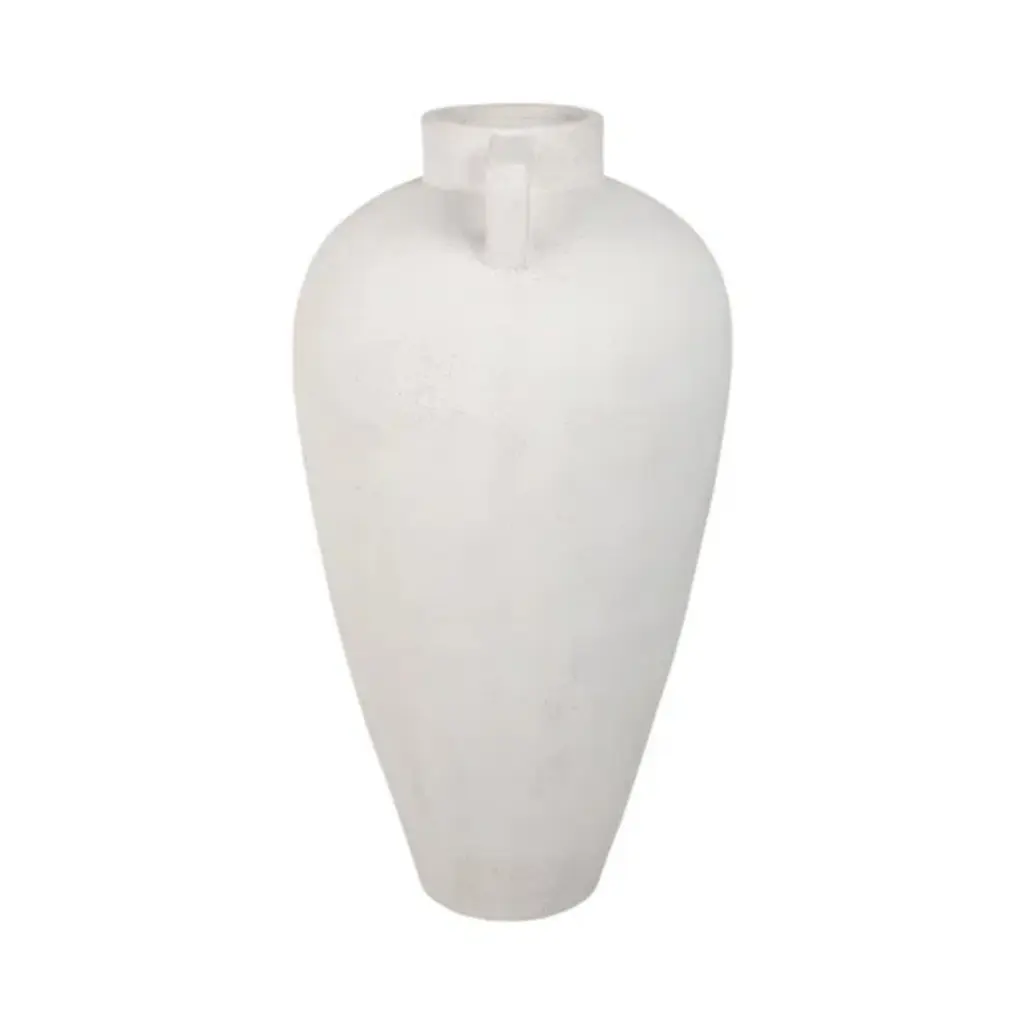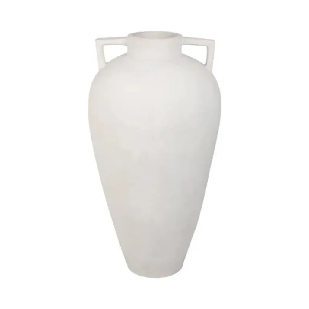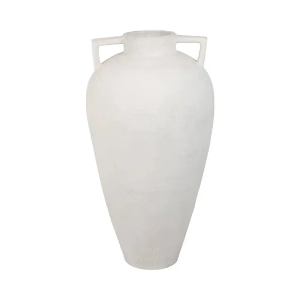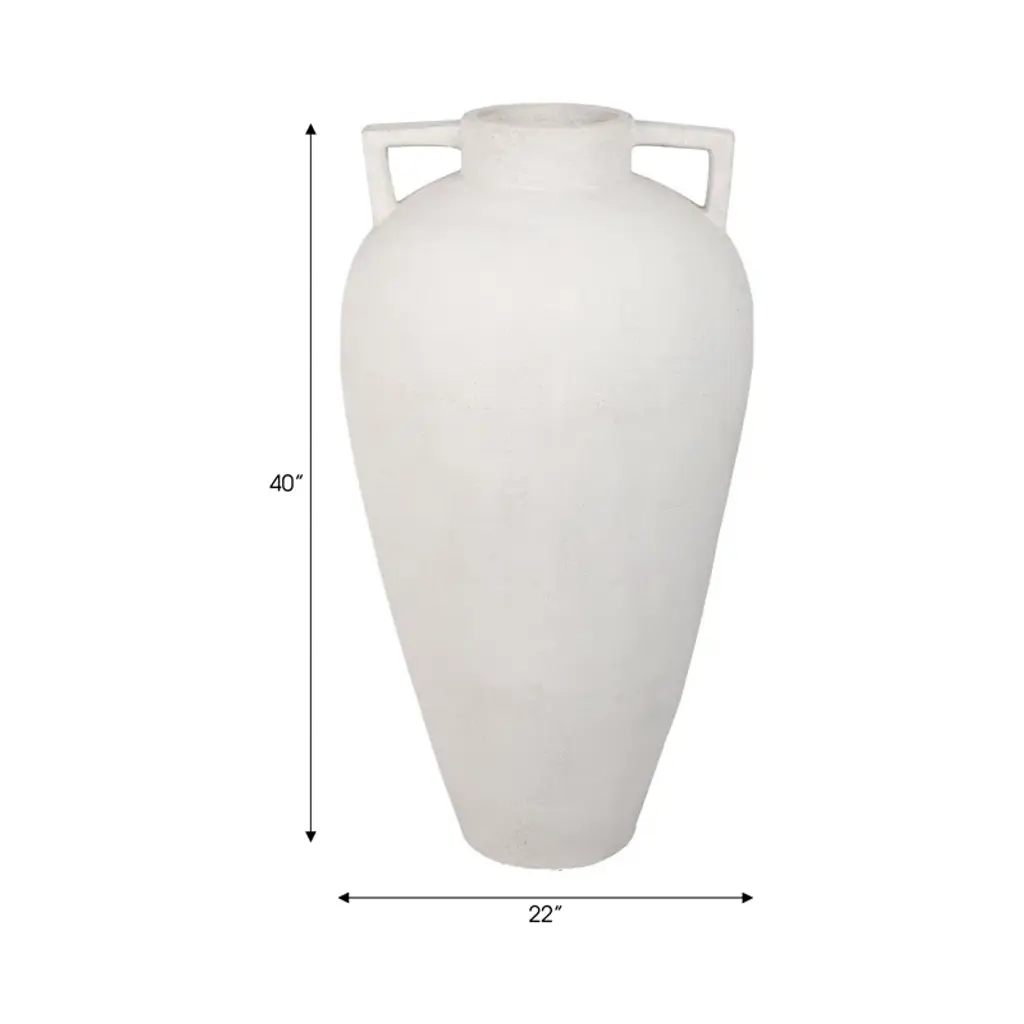 40" Terracotta Floor Vase Pointy Handles, Ivory