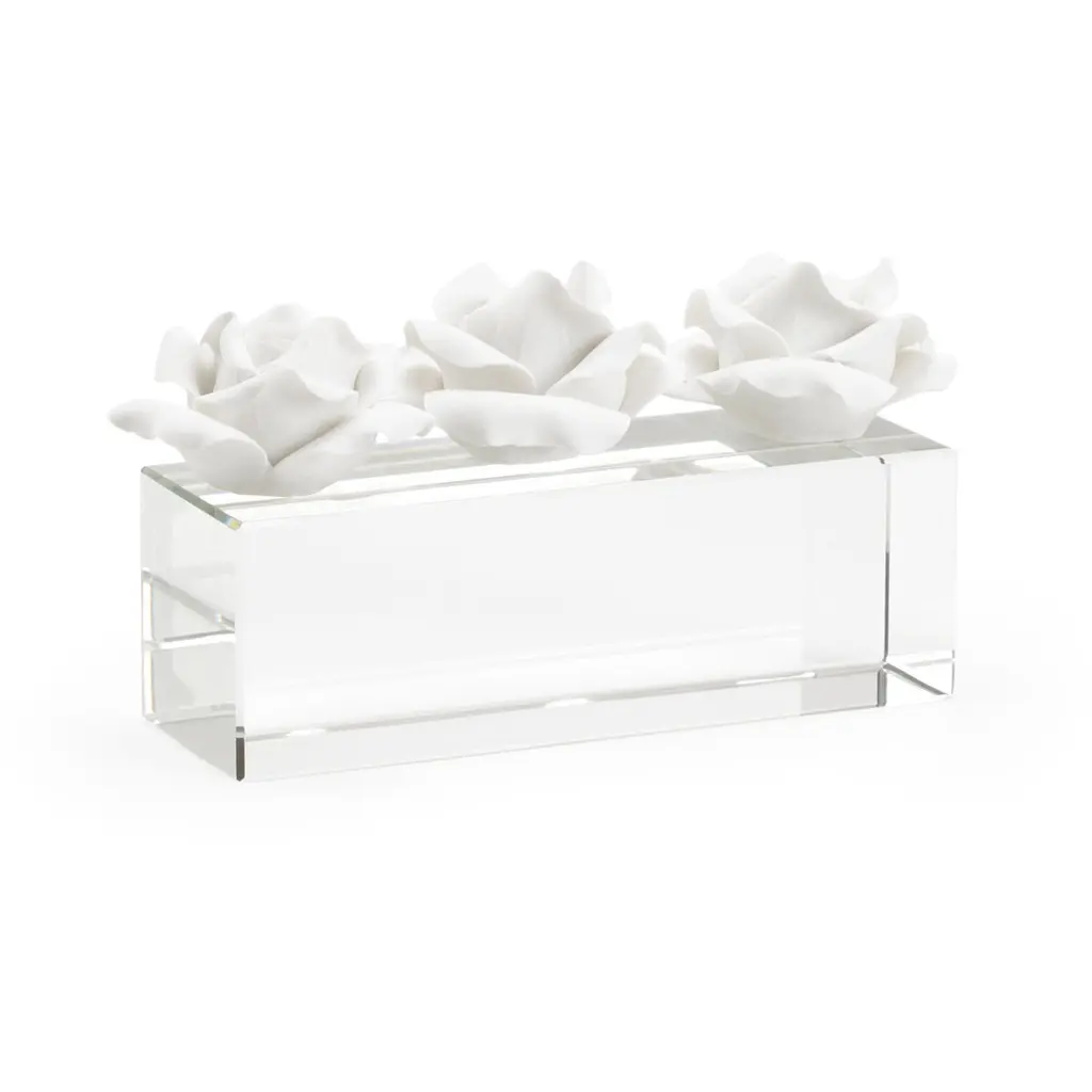 White Roses are the perfect finishing touch to elevate any room. We've imagined a unique spin on the classic bouquet, presenting beautiful close-cropped blooms in a linear display. Each of 48 flower is stunningly showcased within a contemporary rectangular glass vase.Also available in red roses. Glass Vase | Real Touch Silk Flowers