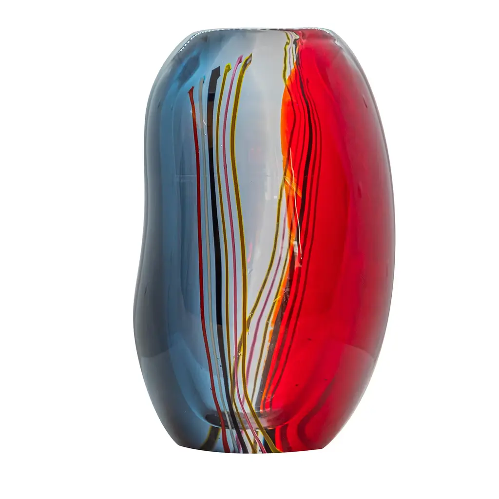 A triumph of polychrome glass rods deftly juxtaposed and molten together lend this Murano glass vase its bubbly personality. Part of a re-edition of pieces Gio Ponti designed for Venini for the 26th Venezia Biennale Exhibition, it makes for a vibrant and timeless addition to elegant interiors. Each piece is handcrafted and unique, a testament to Venetian glassworking tradition.