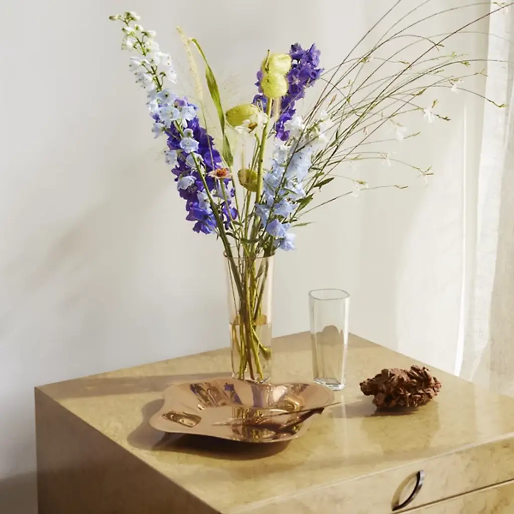 Place plants and other tall, slender curios on full display from the clear confines of the Aalto 7-Inch Vase from Iittala. A subtle, clear glass construction fabricated in the Finland factory, it flares outward from a slightly narrower base, contrasting orderly, transparent sides with a thicker, translucent lower section for a memorable and appealing character.
