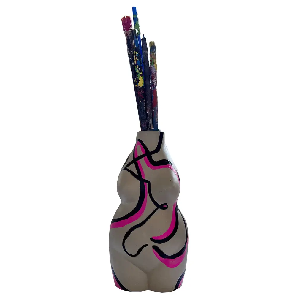 Metallic Gold Voluptuous female body vase. Hand spray painted in gold. An amazing feature piece for your home or a gift. Celebrating all shapes and sizes of women.16 x 8 x 8 cm320 Grams