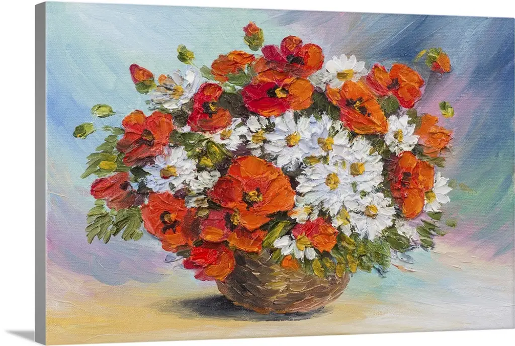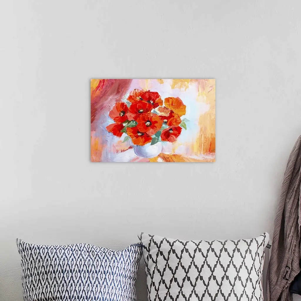 Originally an oil painting still life, abstract watercolor bouquet of poppies.