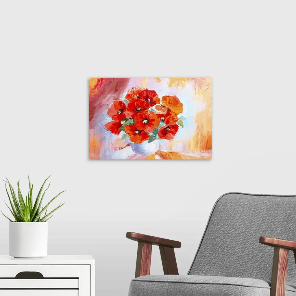 Abstract Watercolor Bouquet Of Poppies In Vase