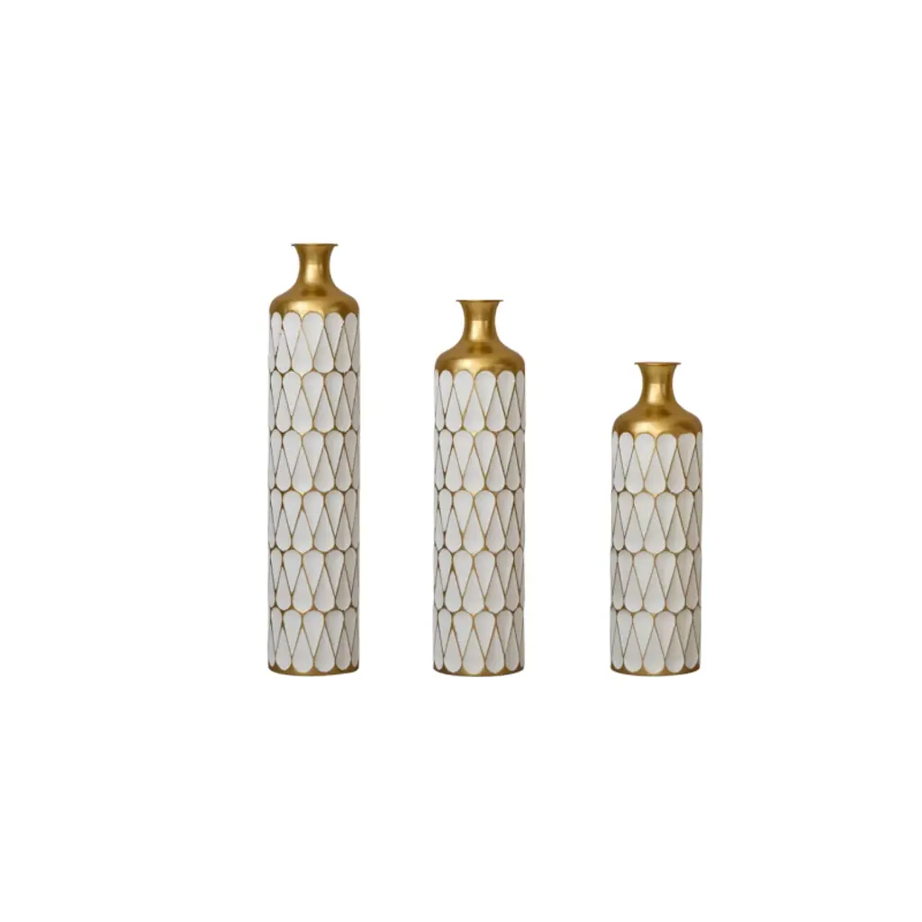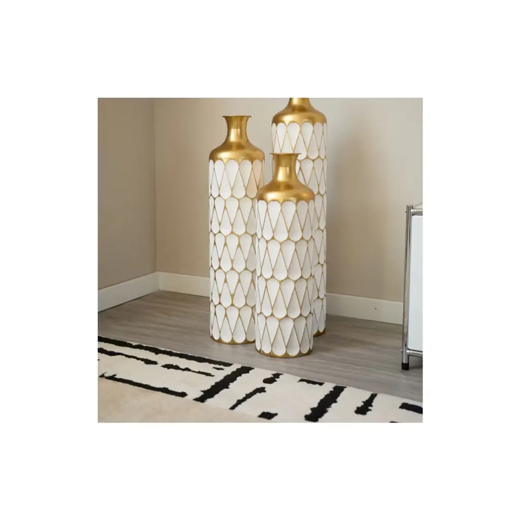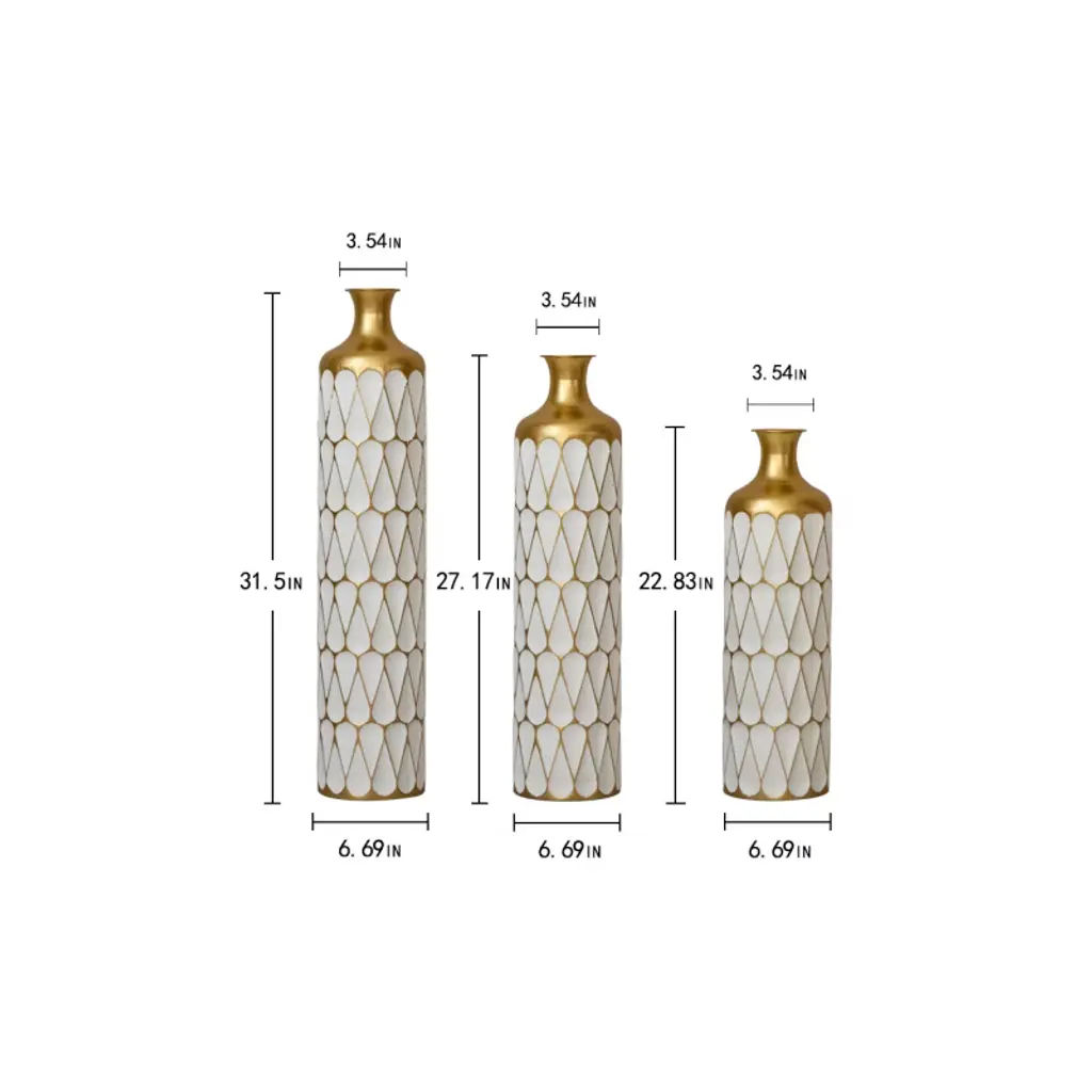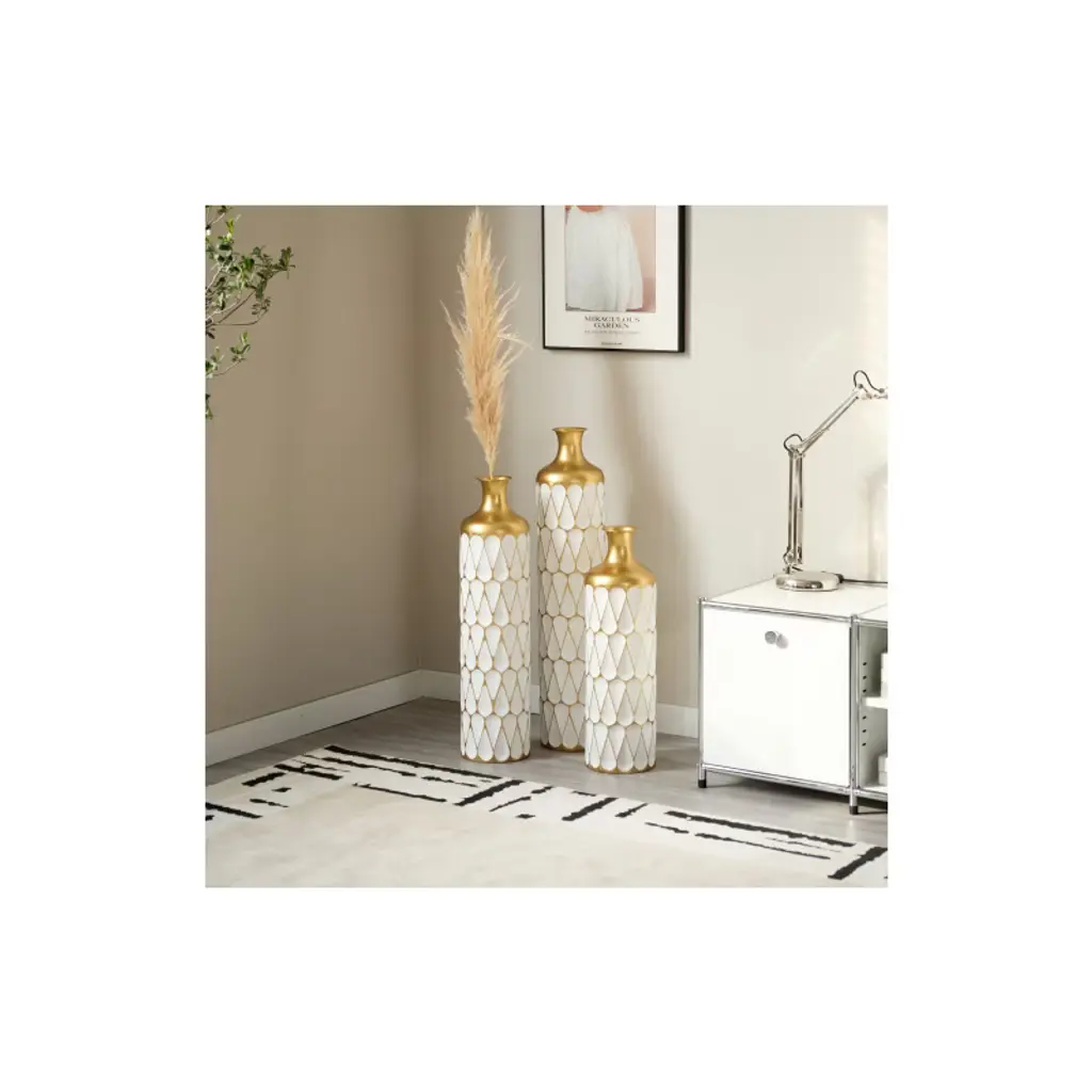 Acepano Set Of 3 Modern Metal Floor Decorative Vases For Gorgeous Home Decoration-white