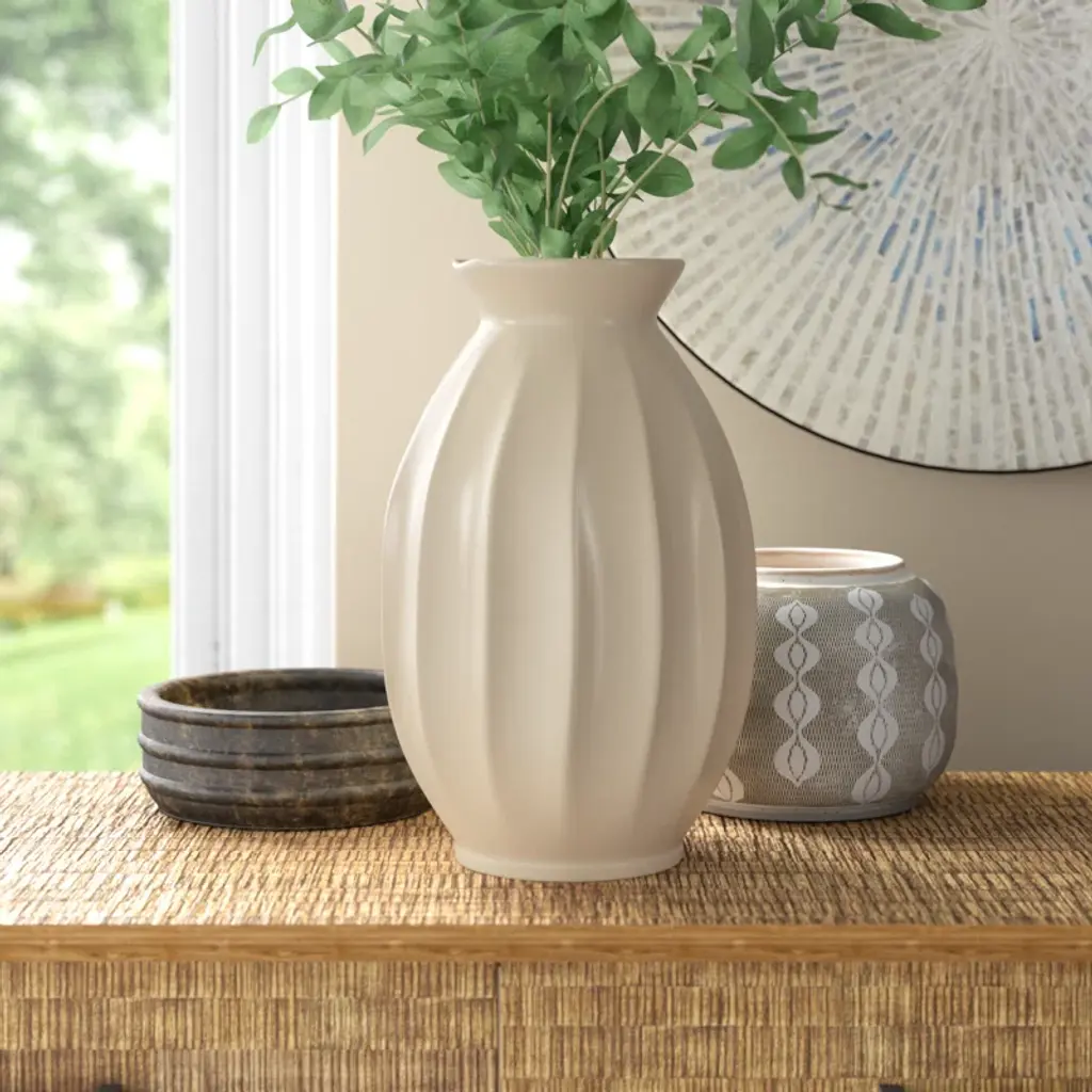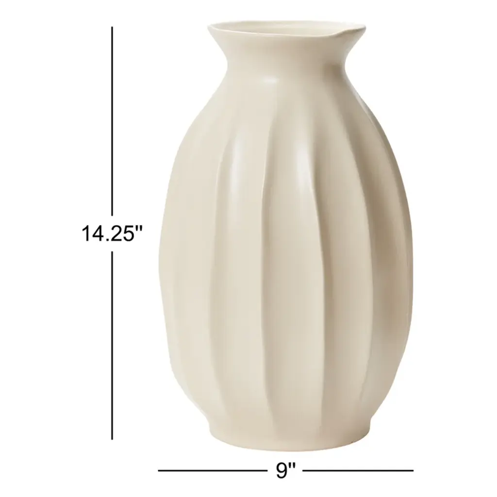 A vase that's anything but ordinary. This table vase, handcrafted and finished in cream, adds a modern twist to your decor. Its novelty shape and solid color pattern are a nod to minimalism, fitting into any indoor setting effortlessly. With its watertight feature, it can house your favorite fresh blooms without any mess.