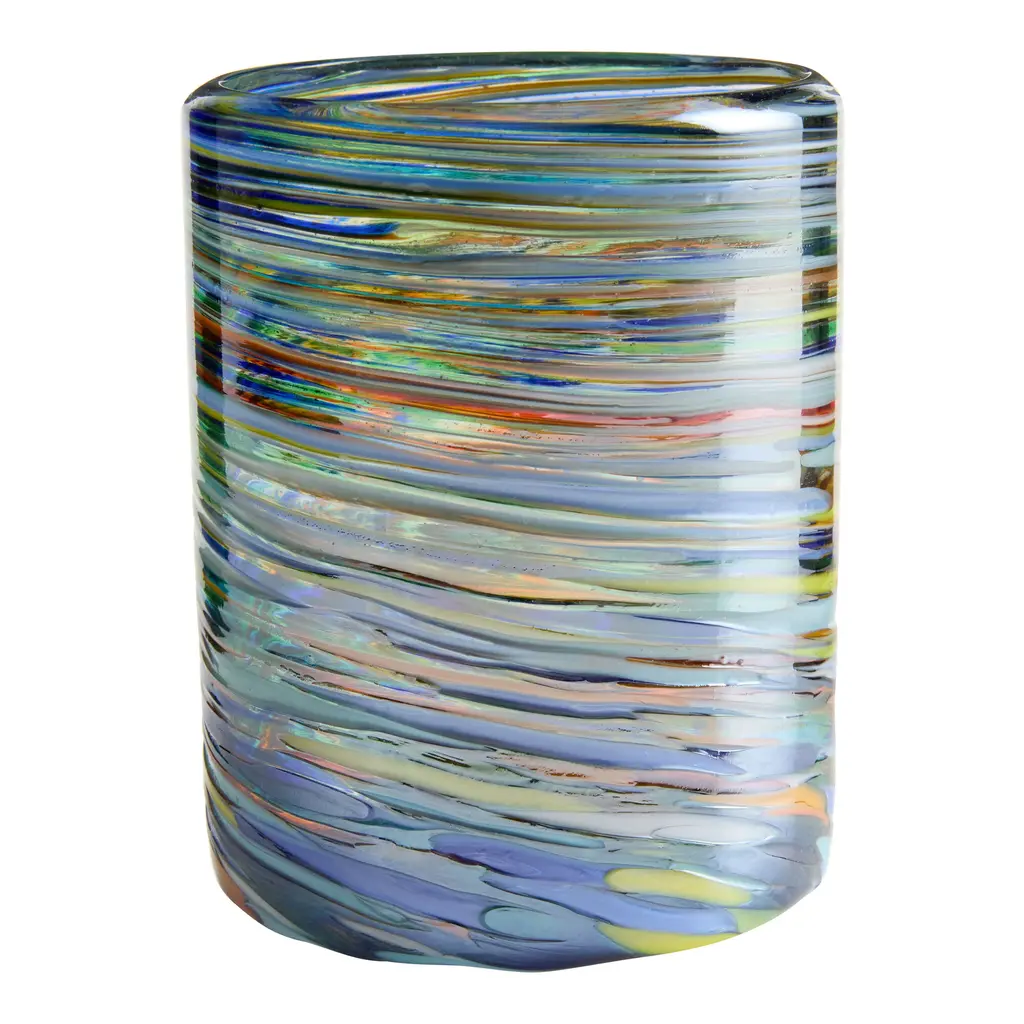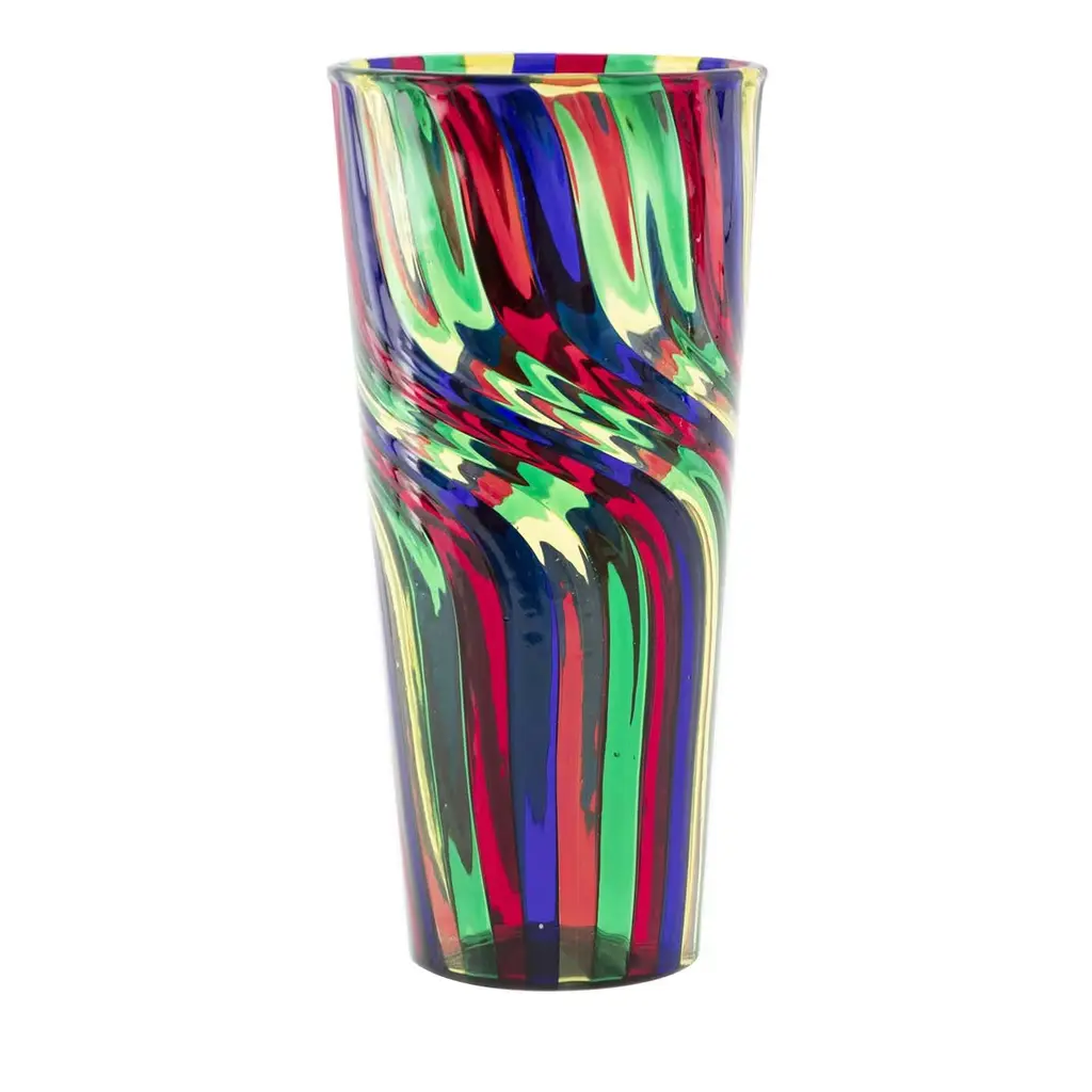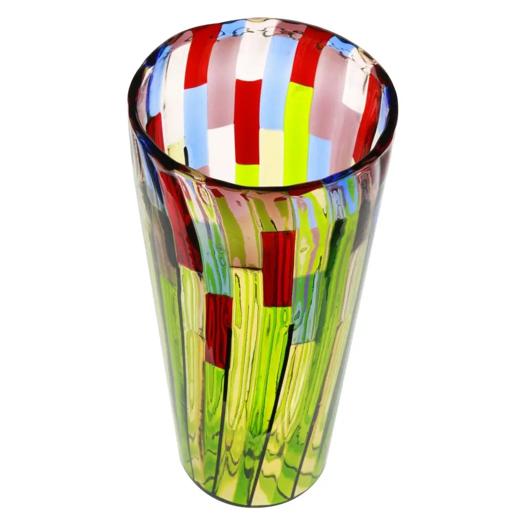 The prevalence of blue recalls the colors of the sea: that's where the name Acquamarina comes from. Aquamarine, blue, yellow, green, red and orange are mixed together to create this wonderful collectible vase that will give a hint of color to your home. Completely handcrafted by Angelo Ballarin, it has been made by combining Murano glass tiles of different colors together.
